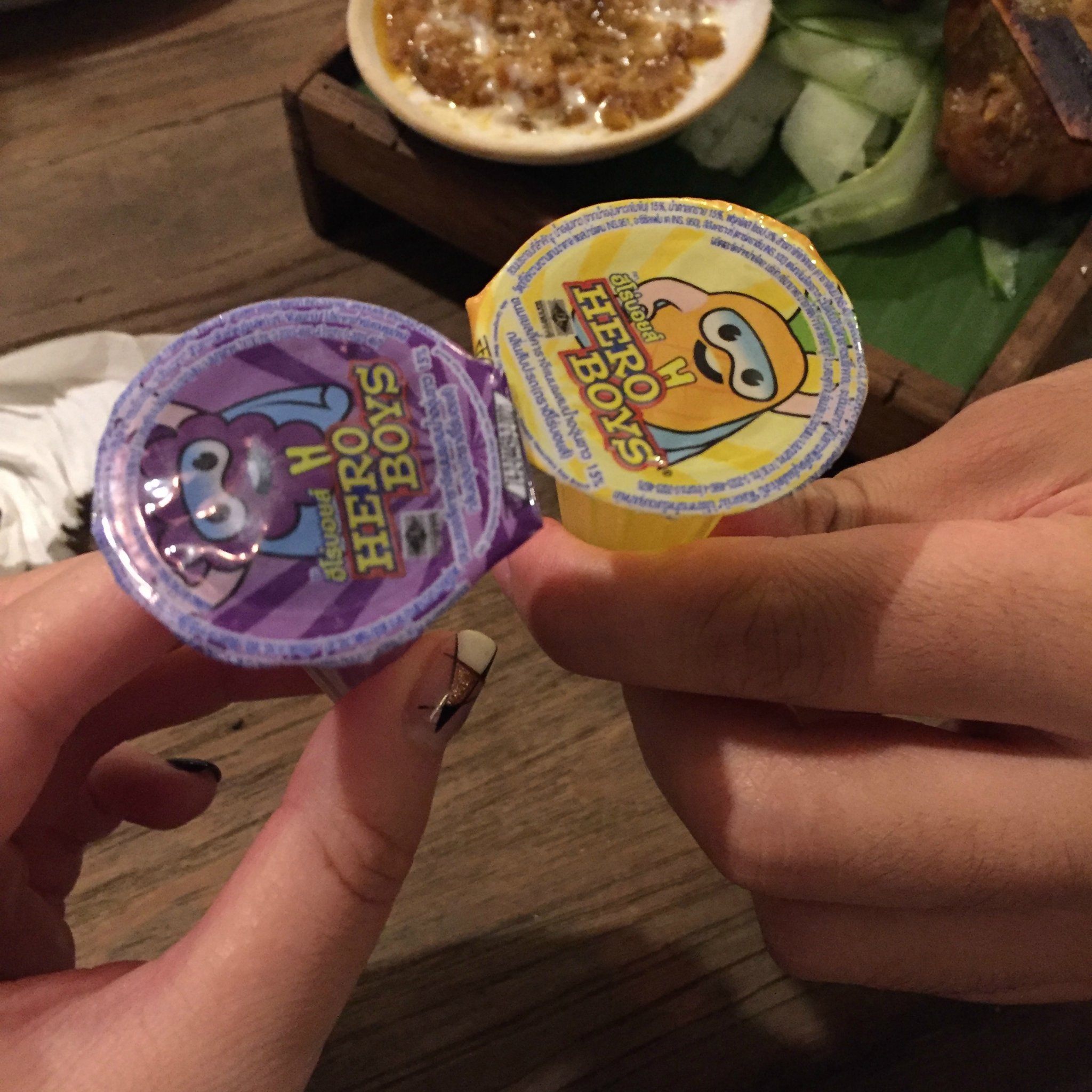 用刚才在夜市的BIG C买的果冻庆祝一下才上上齐了,碰个杯……
