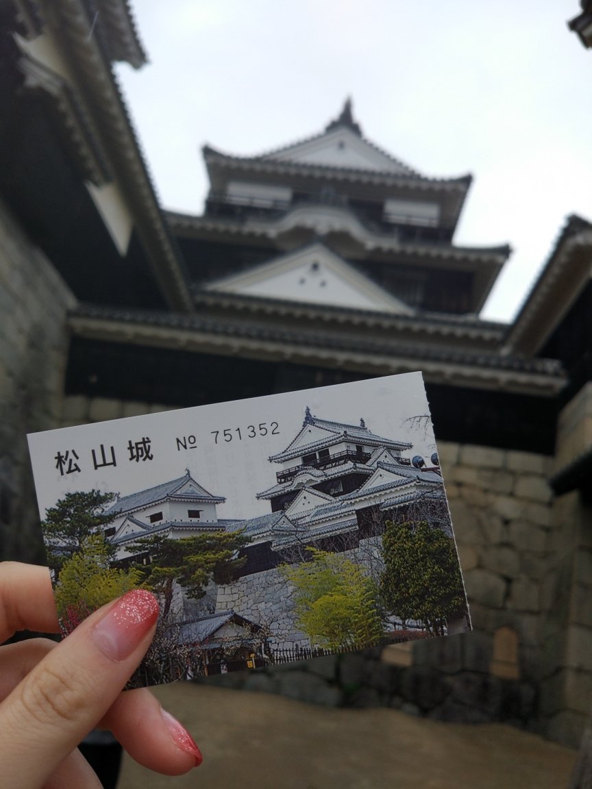 松山市也不大,JR站下来,市内有电车,交通还是很便利的。松山城也有天守阁,有两种方式可以到松山城天守阁,一般的话就是车厢电缆车,另一边是一人一座的椅子电缆车。我去的时候,当天有点儿下小雨,所以只能坐一般的车厢电缆车,一会儿就到了,缆车上会有穿传统服装的女工作人员,用很萌的声音介绍,当然其实日语我一点儿听不懂。跟所有的天守阁都差不多,没什么文化的我只能到此一游,倒是松山城下面的一条商业街感觉很不错,只可惜我一心想着到高岛屋去购物,所有商业街并没有时间好好逛。女人就是一进商场,时间过得飞快,没逛几个柜台,就已经傍晚了。在高岛屋的退税柜台碰到了中国留学生,小伙儿还帮我们充当一下翻译,退税完全不用排队啊,我们是非常罕见的外国人!!!