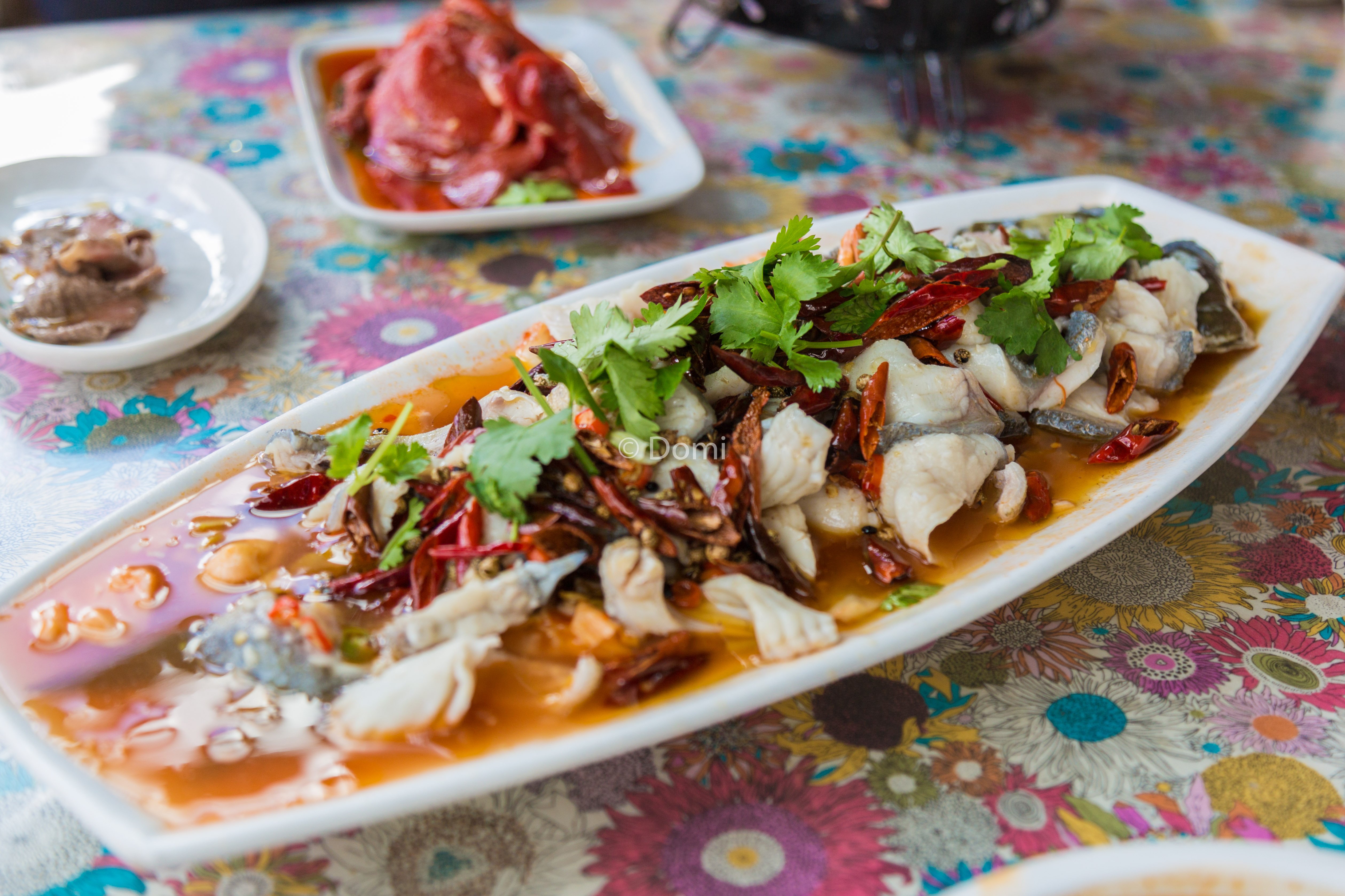 最出名的要数雪山鱼和沸腾牛肉,几乎是每个客人必点的,牛肉和油都是老板秘制的,怪不得那么入味,肉质又非常鲜嫩,不用另外加任何调味料,锅里涮3下就可以吃了。店长还帮我们涮牛肉,服务也是棒棒的。