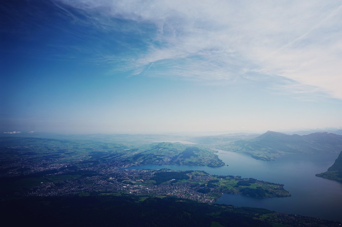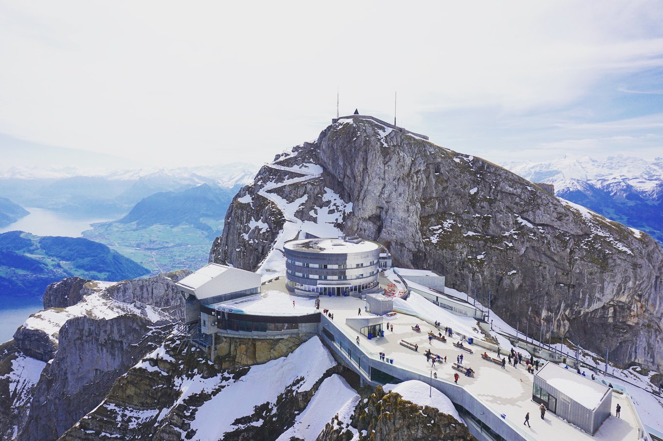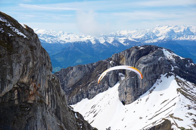 山顶还有一段阶梯可以通往最高点观看琉森湖全景,虽然当天的能见度并非最佳,可是若隐若现的琉森湖谁说不是更美呢。除了看景色之外,山顶还有一项有意思的活动:滑翔伞。从两座山之中帅气穿过,俯瞰整个琉森湖的感觉和其它地方的滑翔伞比起来,更加刺激,更加美,推荐大家尝试。