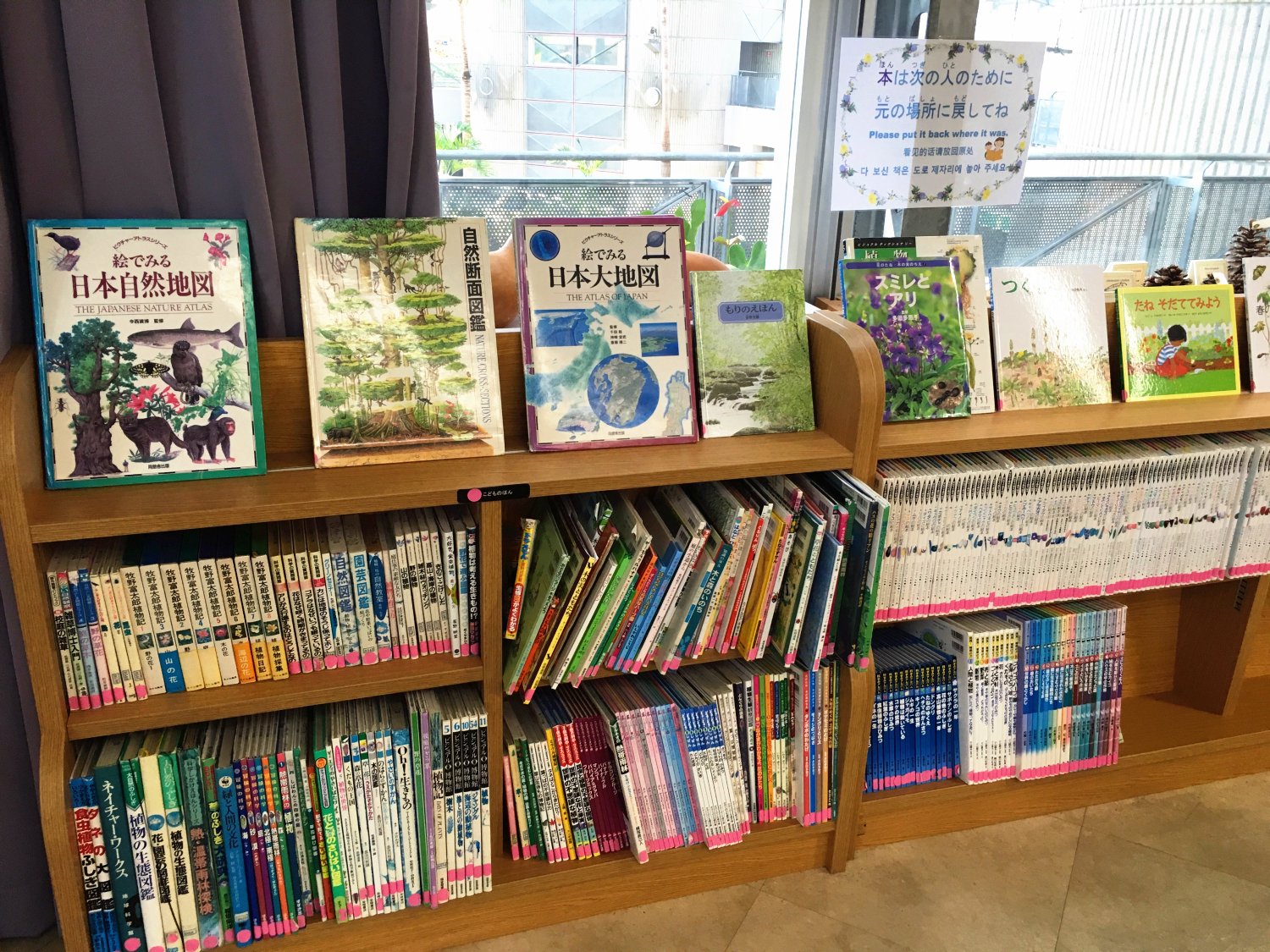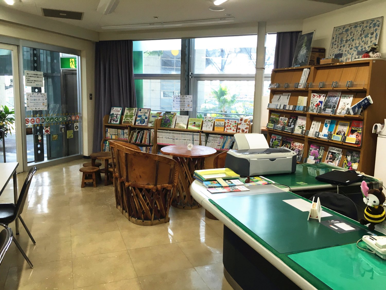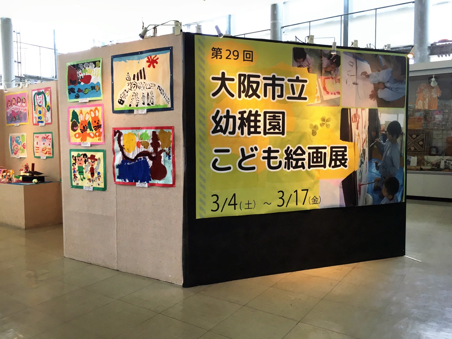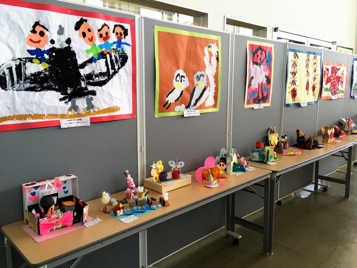 庭院的二楼有一个小型图书馆还有一个绘画展览区,画展区里面的画作和手工品,都是幼儿园的小孩子的作品,非常有创意。