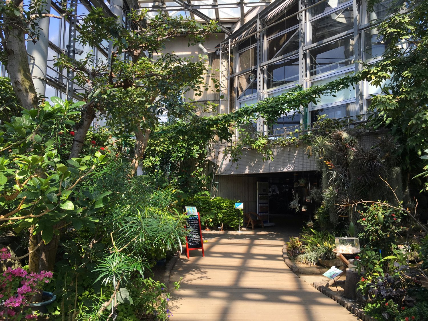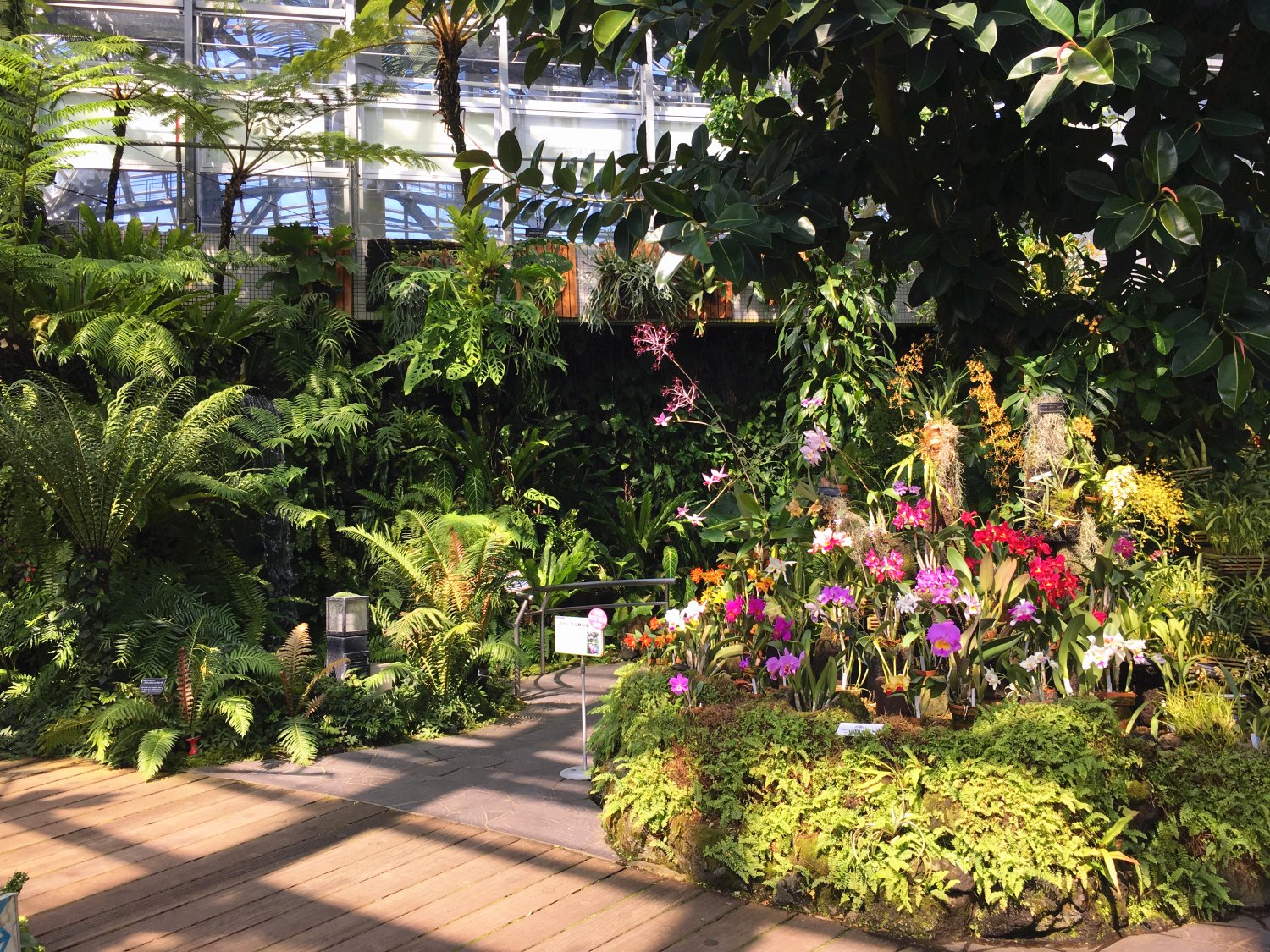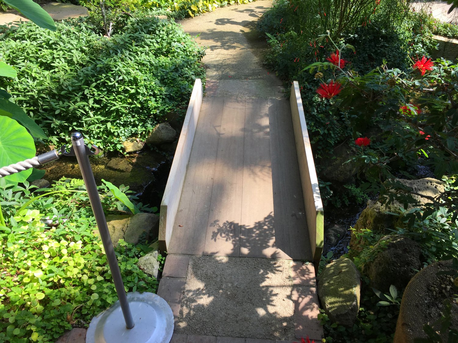 进去之后先会看到室内的温室植物,相对室内的花朵颜色也会更加鲜艳多彩,然后也设计了一些简单的小桥流水,休息庭院,使得参观过程更添乐趣。