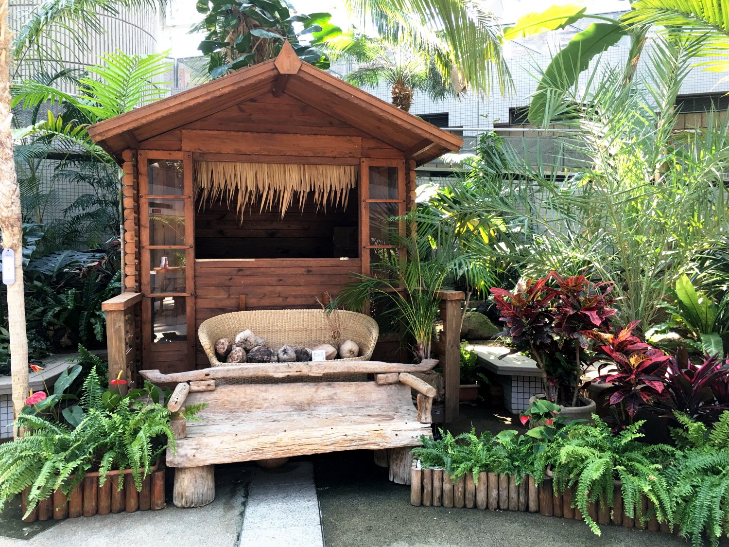 然后就是一个户外的庭院,庭院里面除了一个欧式庭院以外,还有放置了很多大型的仙人掌和亚热带植物,其中有个植物比我的个子还要高,非常壮观!