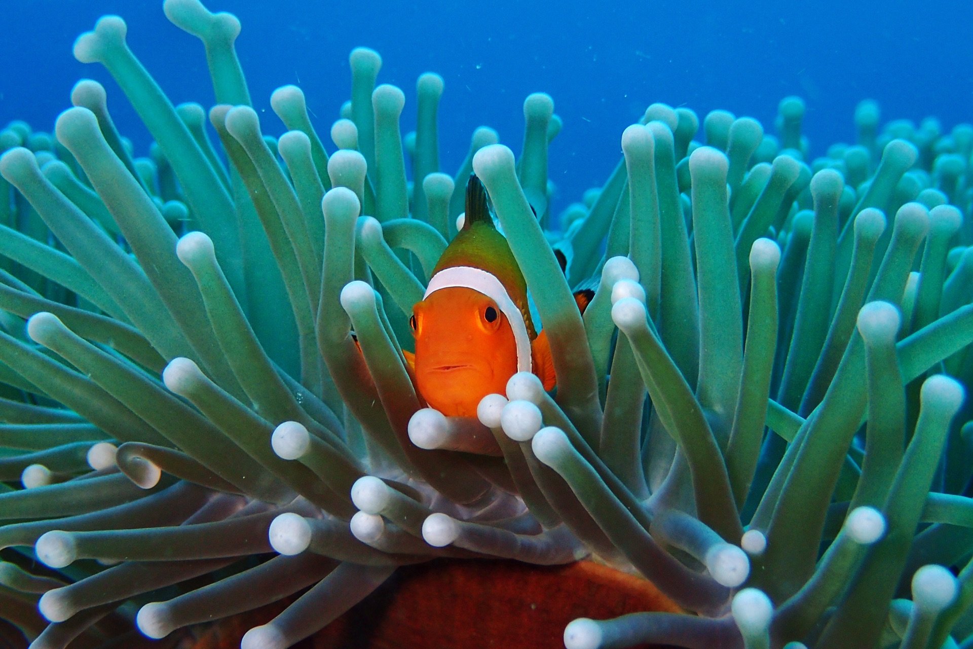 我在菲律宾两次潜水都是这,基本体验潜水都是带你看小丑鱼