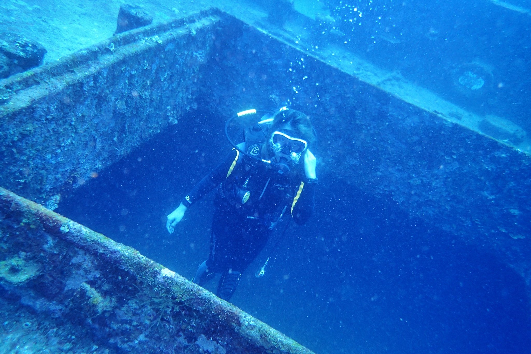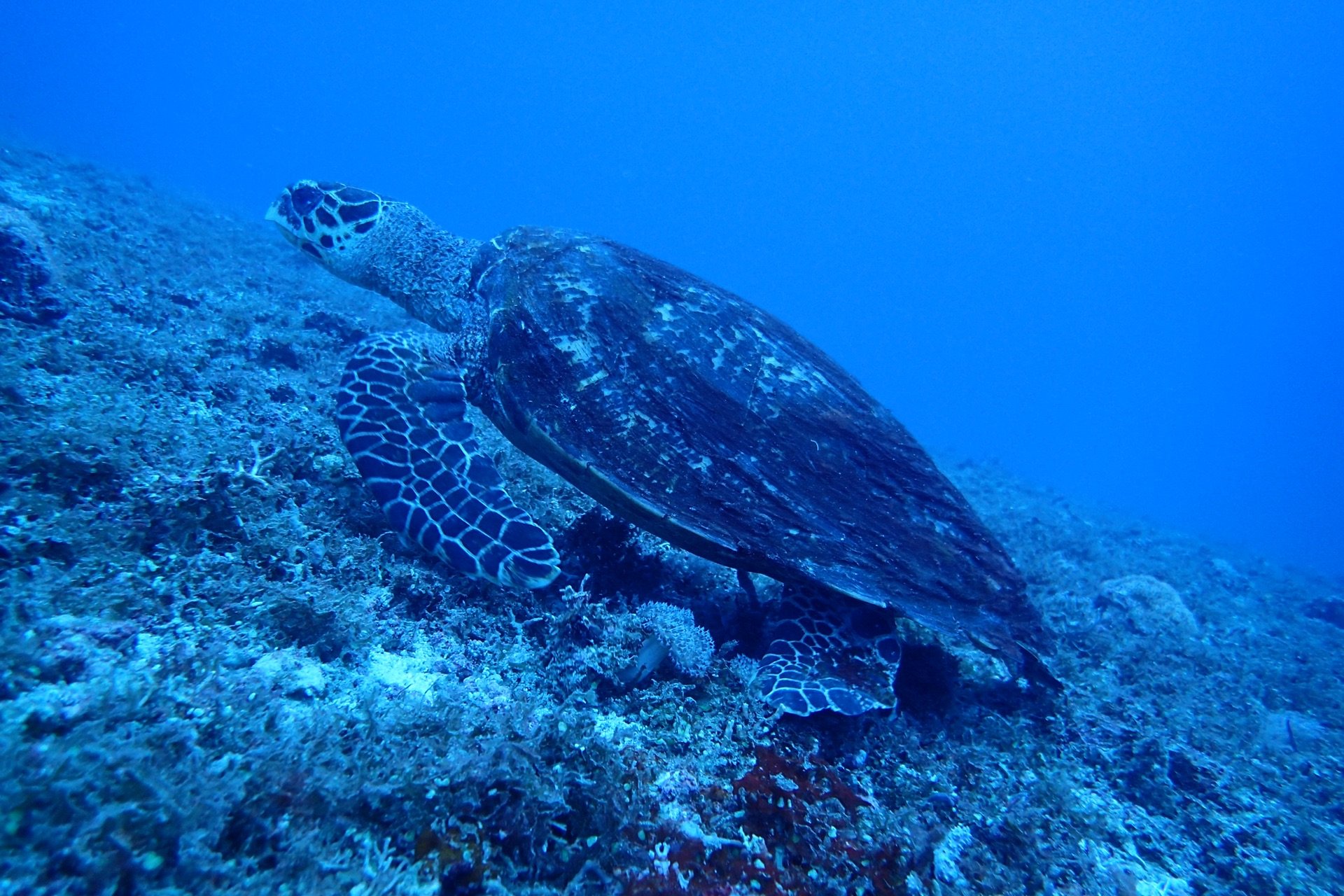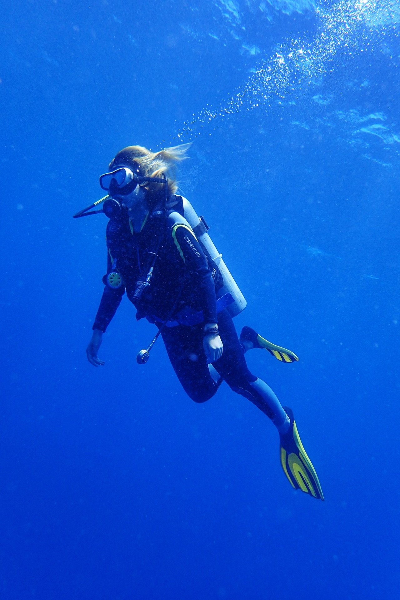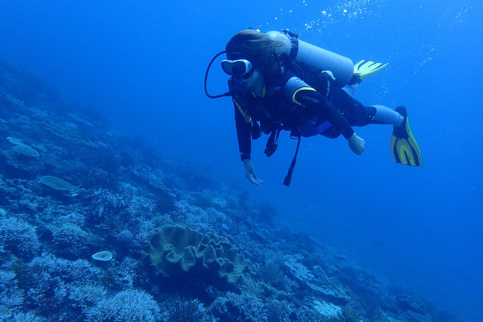 AOW一共有5潜,我好久没潜水了,前三潜都是恢复和复习,深度都在18米以内。