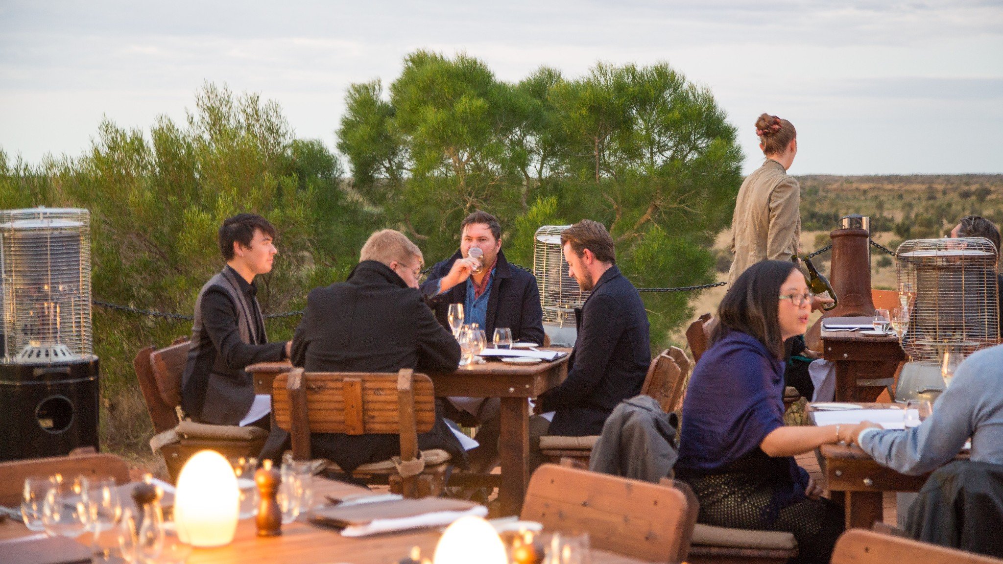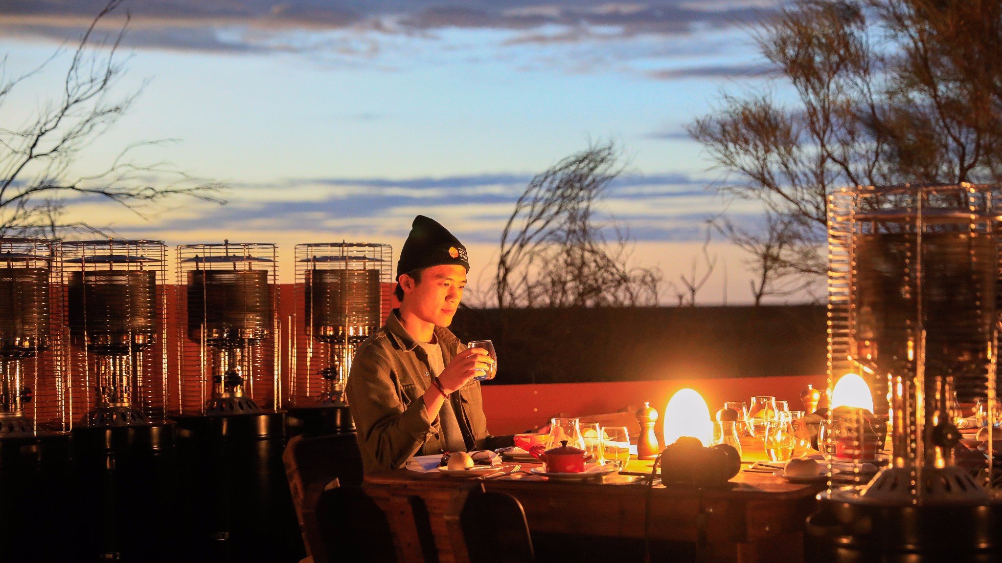 在这片荒无人烟的红土地上,我们邂逅了最美的黄昏和最璀璨的星空,品尝着精心准备的法式菜肴