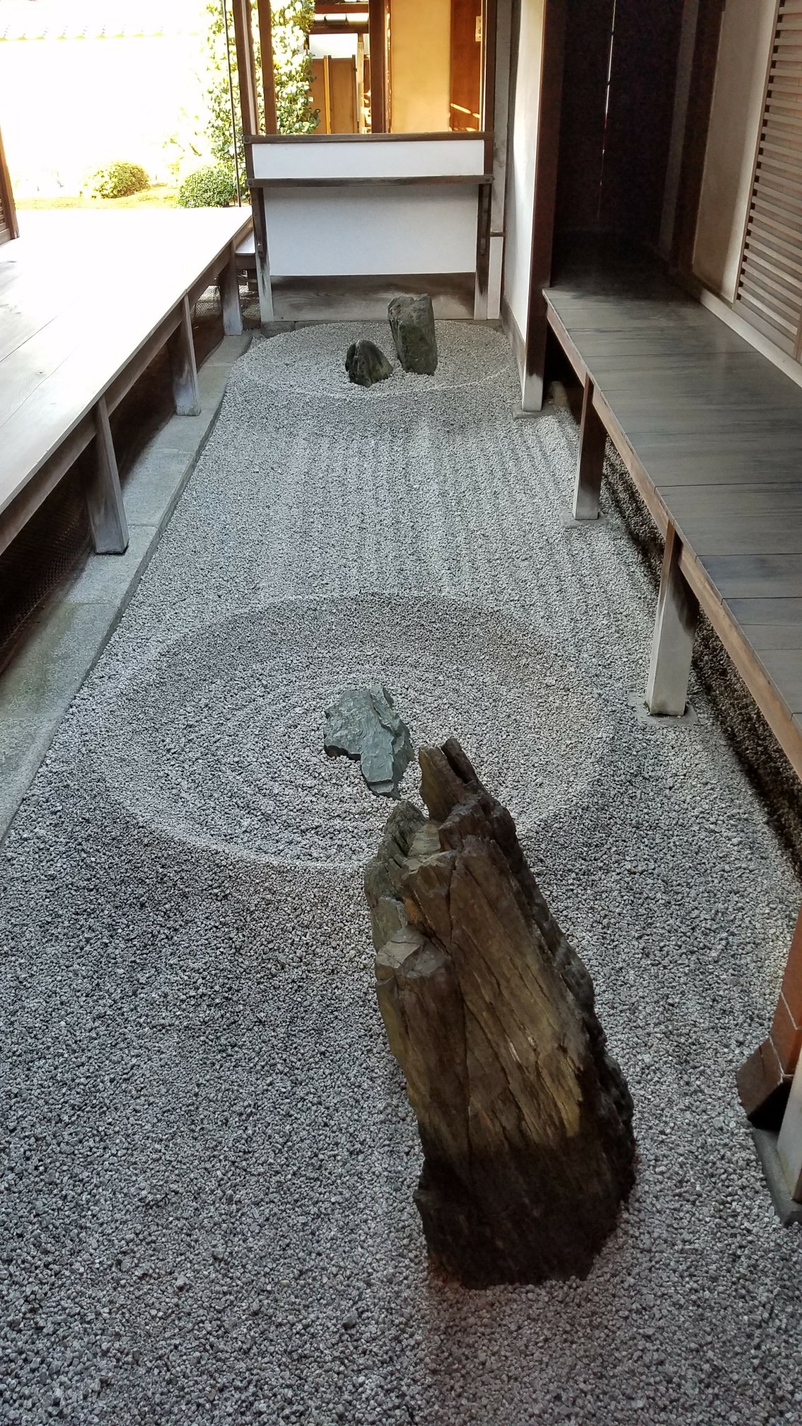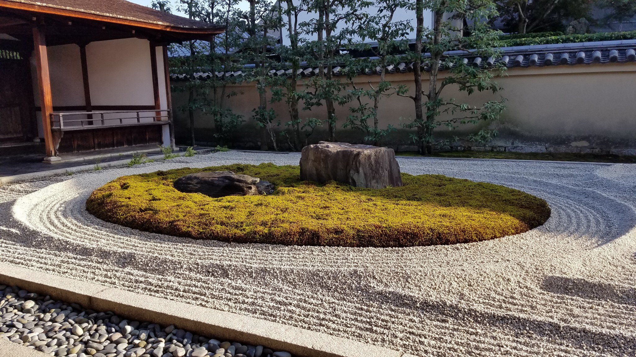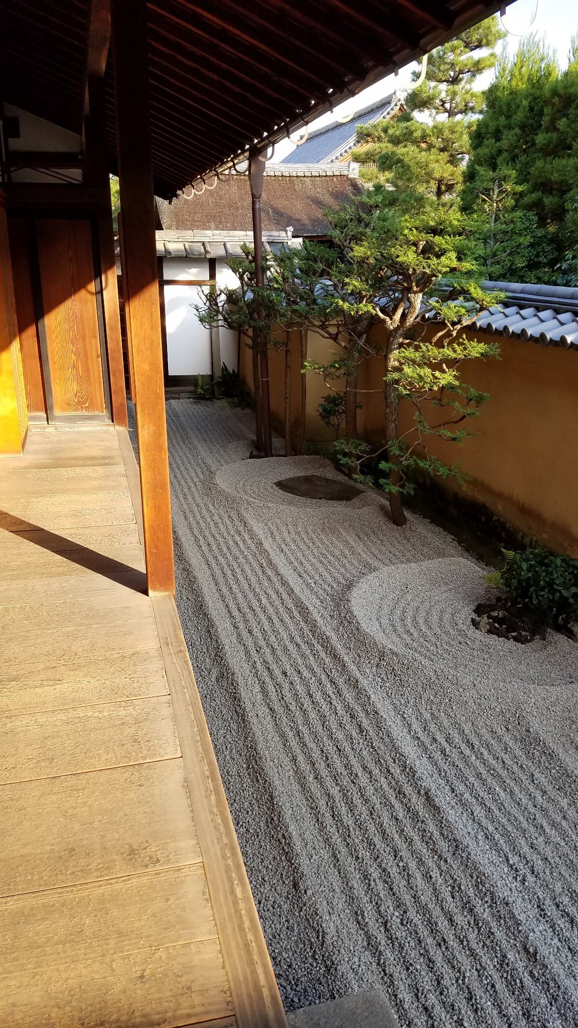来日本前我就明确了一个观光目的,就是“枯山水”,当然在京都有枯山水庭院的景点很多,其中我就选择了《孤独星球》推荐的“龙源院”,龙源院清净,游客较少,拖鞋进入后就静静的坐在庭院边上的榻榻米上,看墙外浮云,赏墙内松柏,品“枯山水”其中蕴含的禅意。