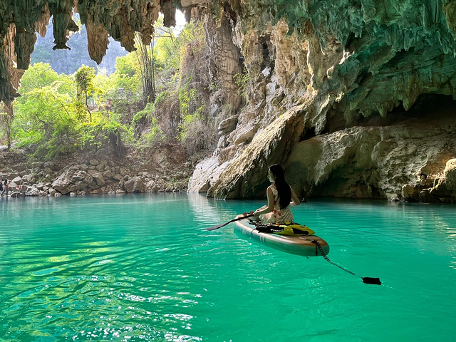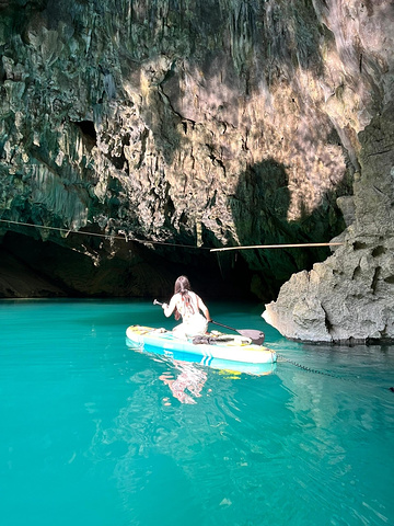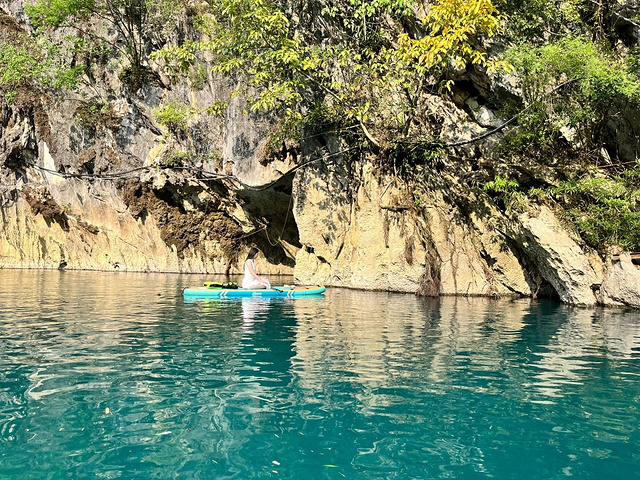 后劲实在是太大了!不是东南亚🌴是贵州🌾|||不要门票🎟️ 离贵阳2h🚗 蓝的心醉,🈚️需滤镜 清明节的第一天,不需要人挤人(放弃小七孔很明智 滑浆板探洞,在东南亚风河流悠游,是自由🏄🏻♂️ 神秘洞坑里溪流潺潺、世外桃源一般⛰️ 是贵州我最爱的、体验感拉满的一站🚉 贵州大小井风景区📍 下面一段尽量说清楚怎么玩(因为网上攻略杂+景区管理混乱,容易迷惑 其实说白了:这里一玩水💦二玩洞🕳️ 先沿着山路上到芭蕉洞响水湾,坐10元往返的竹筏进洞,很神奇的感觉(需要提前扫码付款,里面没有网 再爬很陡峭的一段到洞口,分岔路沿着左边一直走,可以到洞内的溪水🧗(p8-9 看完原路返回,这一段大约1-2h走完 然后去玩水,这里可以选入口那里坐外面的电动竹筏(30/人),也可以选浆板(50/h),我觉得浆板的感觉会好很多!! 比起其他地方围起来玩的浆板,这里整条河道都是可供探索的 河道岔路拍照很美📷:天、人、芭蕉树、河、山,浑然一体(p1-4 而更绝的是:滑浆板可以去探洞(p5-8的洞),洞内神秘、蓝水、深洞,非常值得 我们滑了1h就滑完了这些 最后吃一吃当地的黄豆鸡,就可以回贵阳啦 住:罗甸县,物价很美妙,比如70一顿酱爆烧烤🍖 #小众旅游[话题]# #户外徒步[话题]# #我的小众旅行攻略[话题]# #旅行[话题]# #旅途中的美景[话题]# #风景[话题]# #荔波小七孔[话题]# #大小井风景区[话题]# #贵州[话题]# #贵州旅行[话题]#