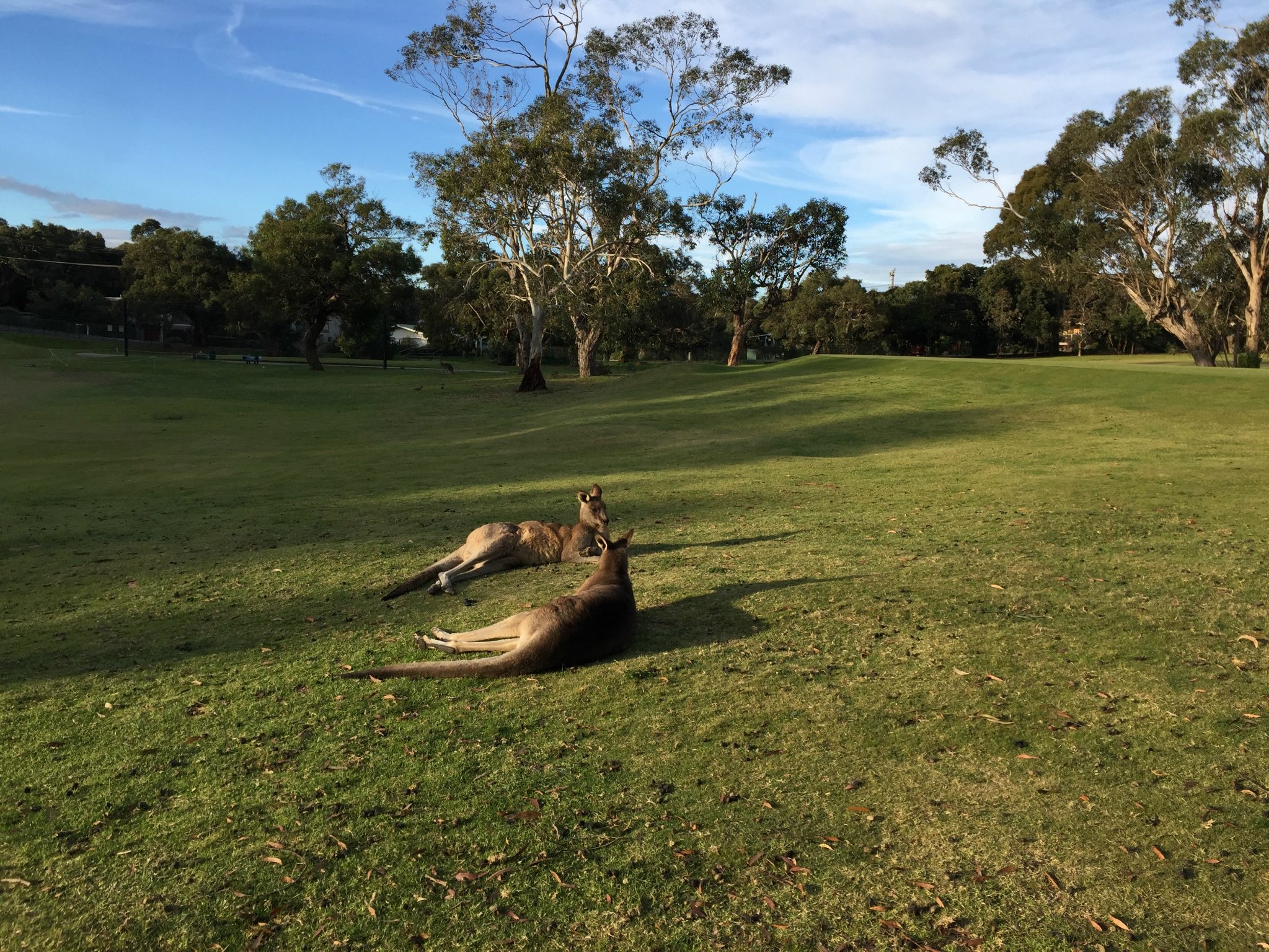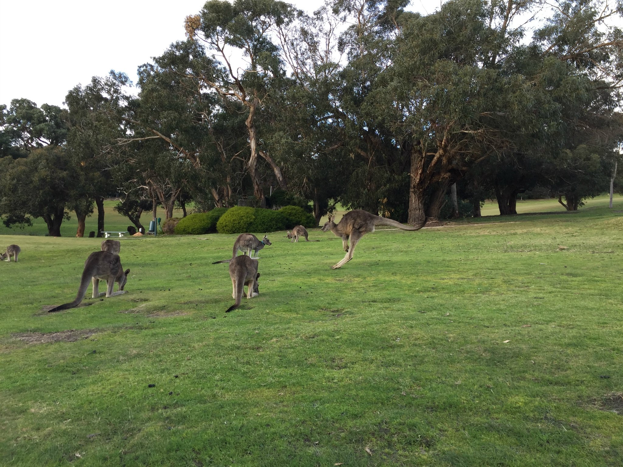 一开始就这样漂亮,都舍不得离开。为了看到下一站的美景,依依不舍的离开了。打开行驶了30分钟到达了安吉尔西,行前就听说这里有个高尔夫球场,里面有很多袋鼠,怎么能错过这个亲密接触的机会。