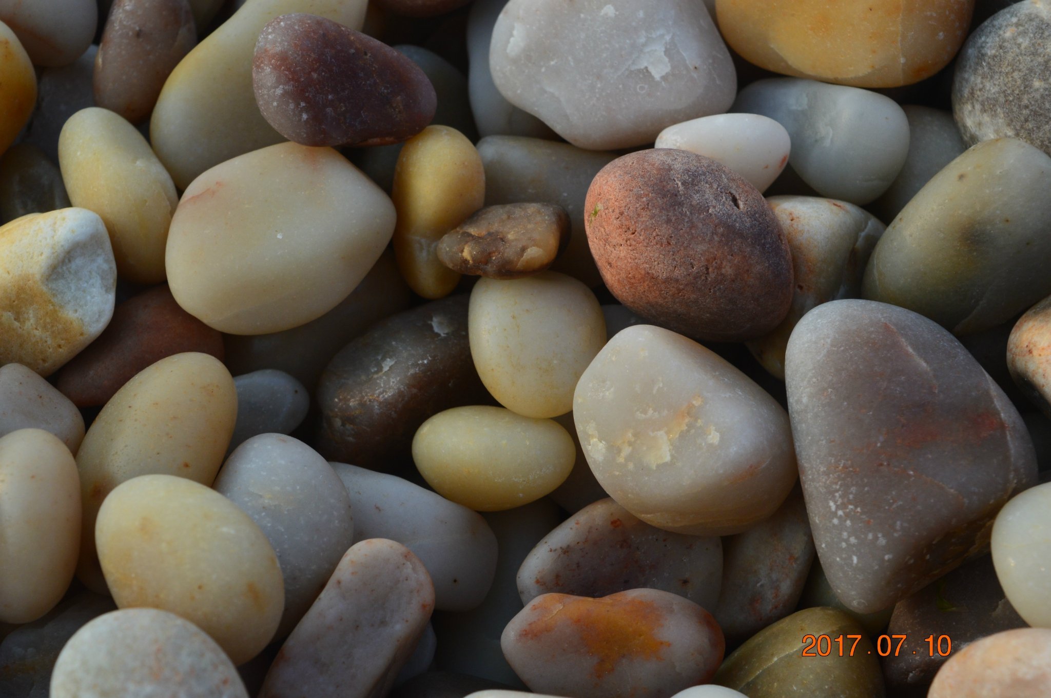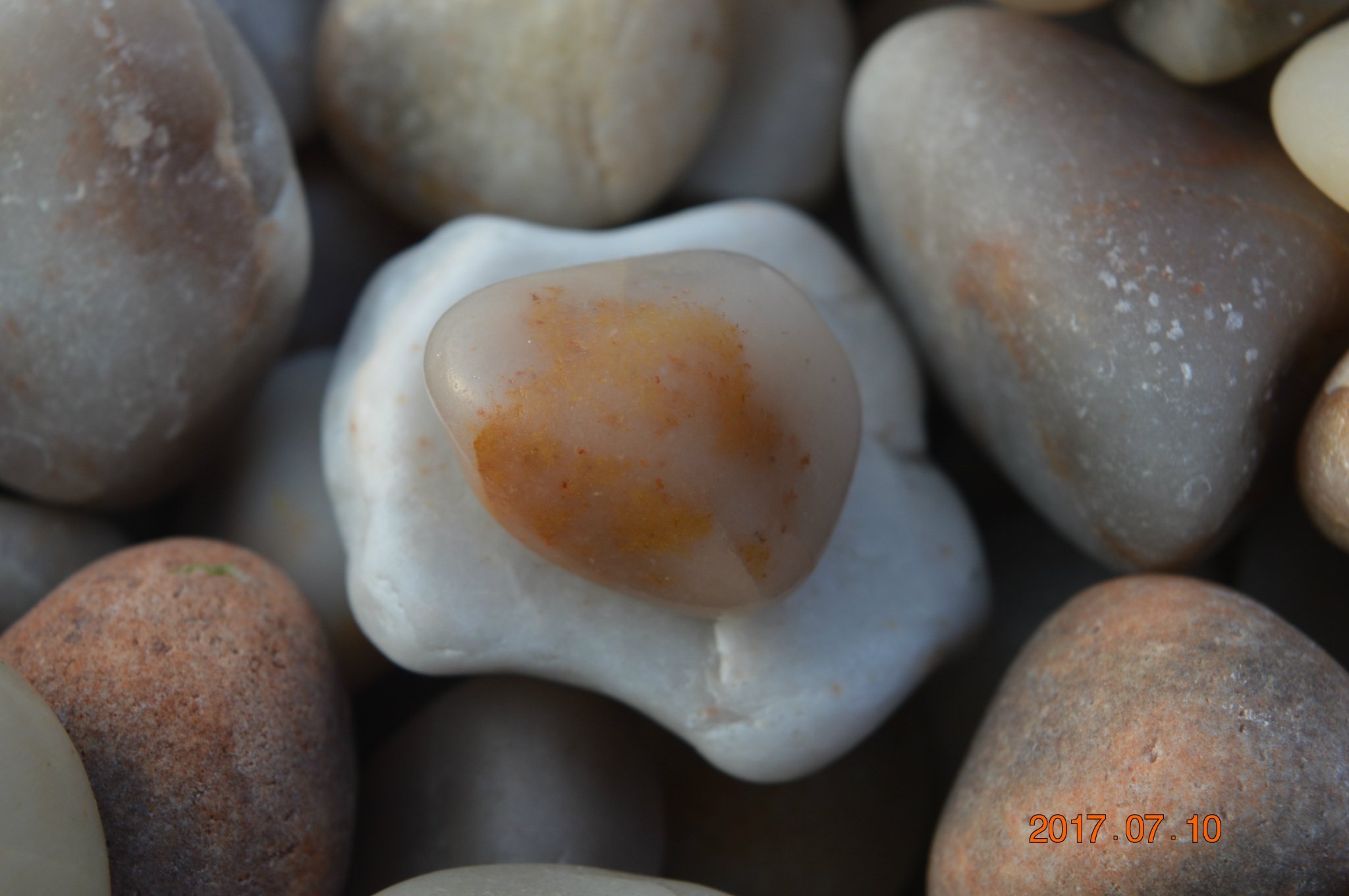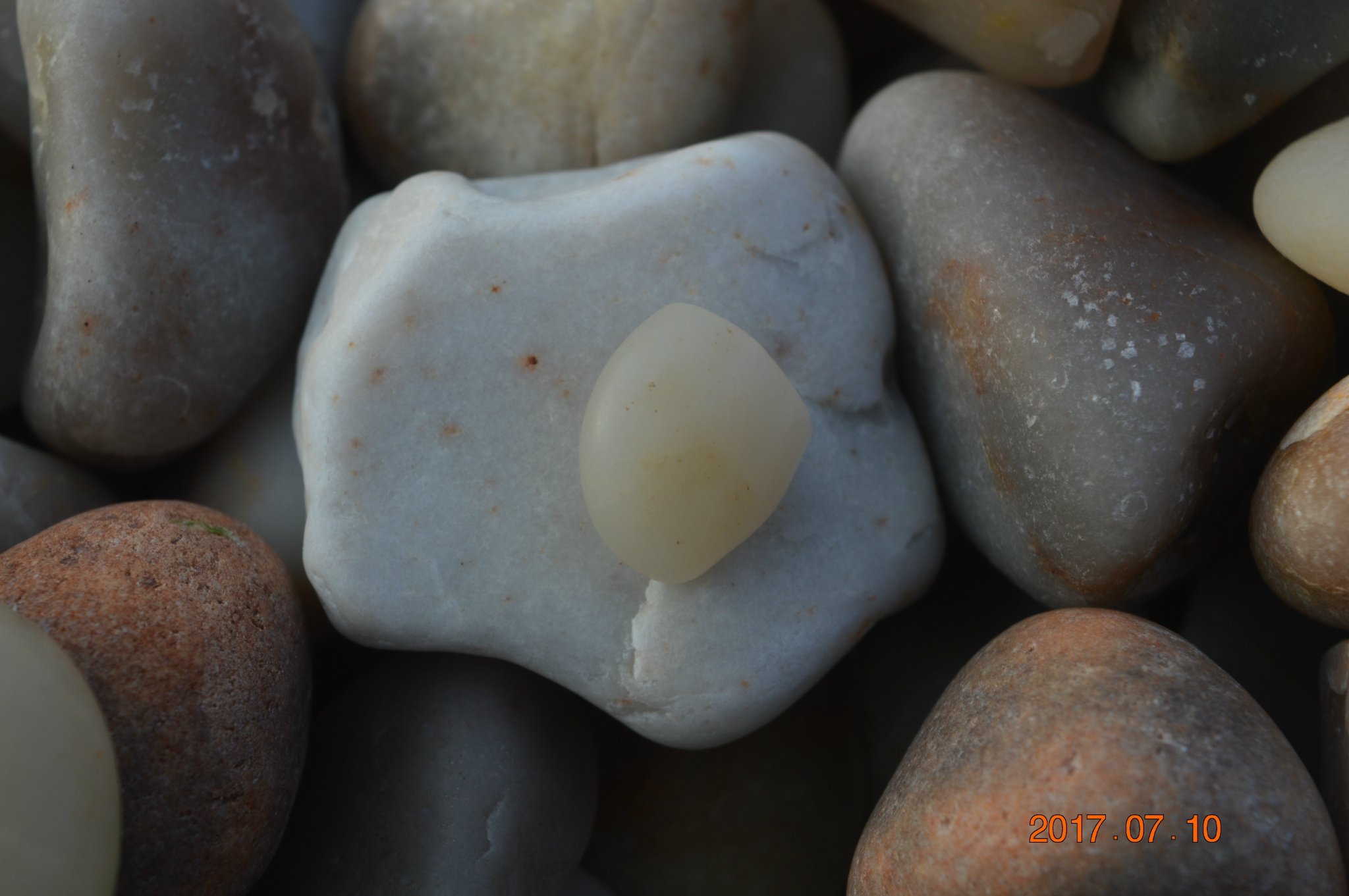 ...打造出来的石头滩的精美绝伦,它还有个美丽的名字叫球石,色彩艳丽,颗颗晶莹剔透,象雨花石一样漂亮