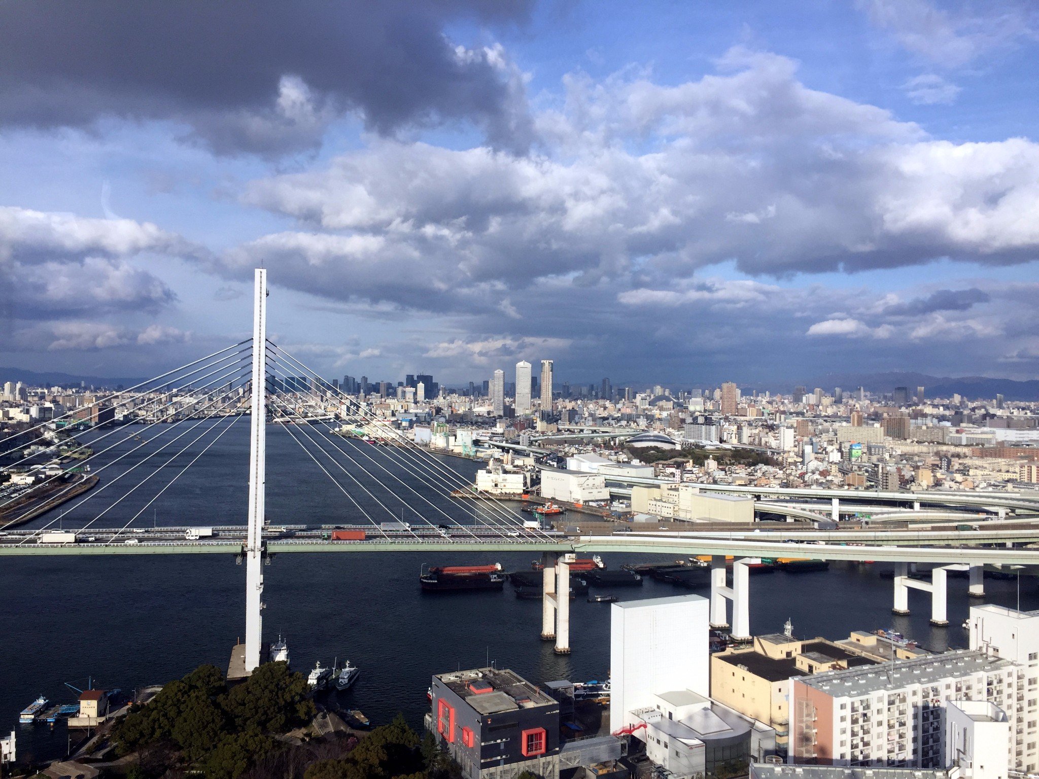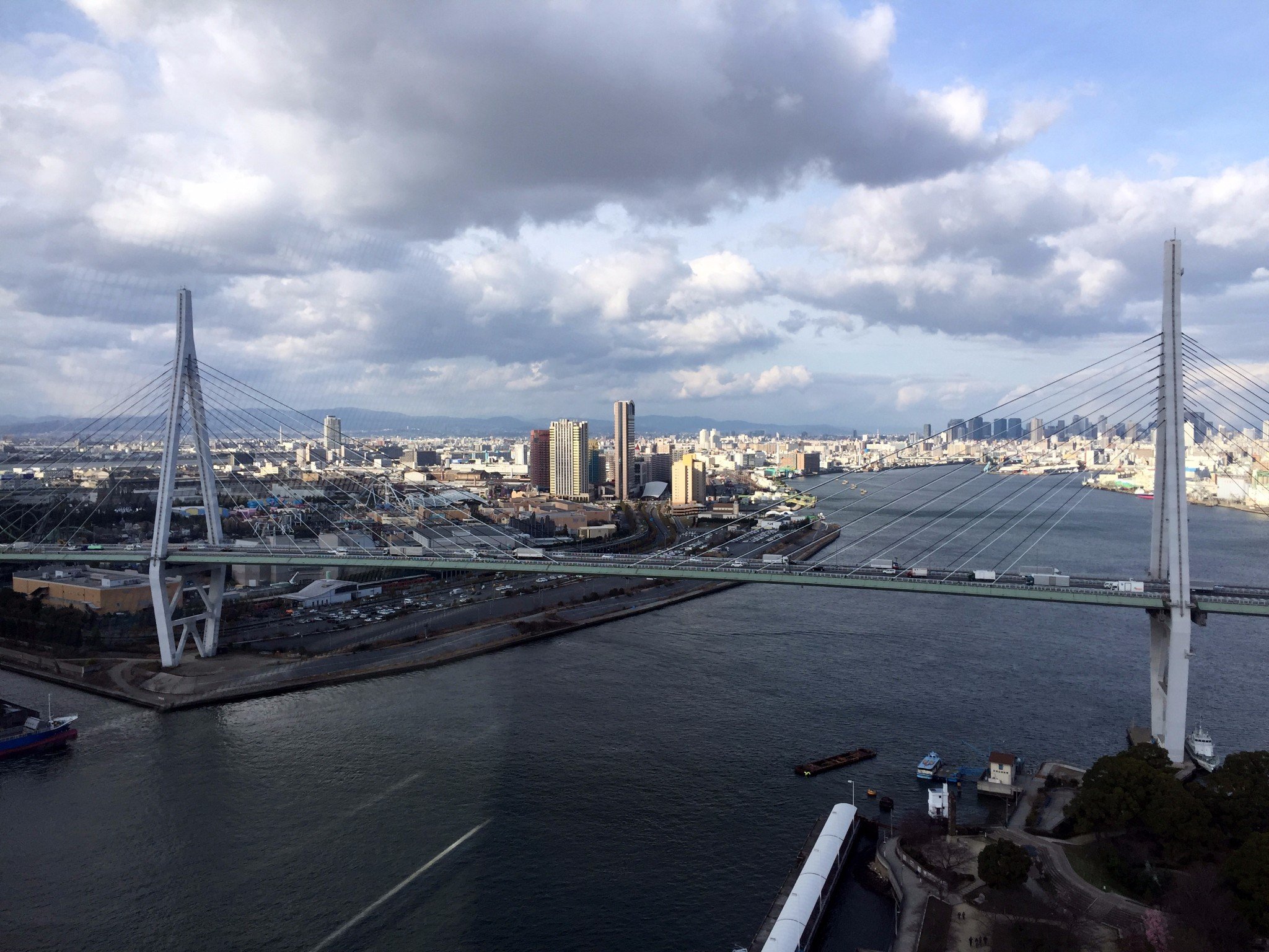 5米,一圈转下来需要15分钟左右,上到最高处,鸟瞰整个大阪市区和大阪港非常的壮观