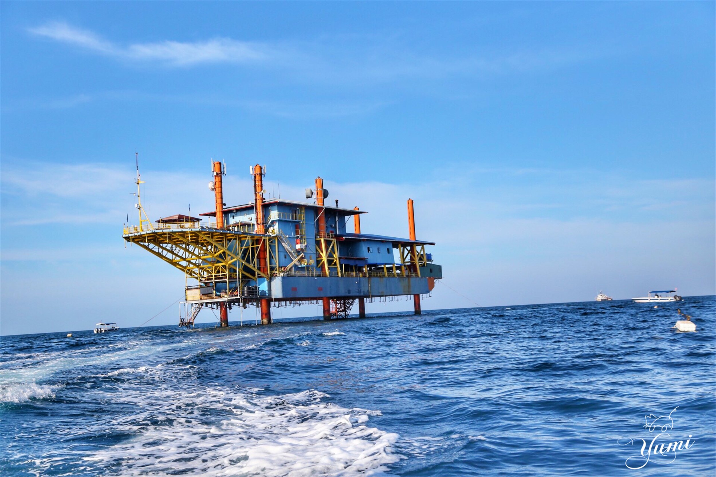 我住在海中央的钻井平台改造的极限潜水平台上,感觉有点酷,哈哈,环境还是十分不错的,