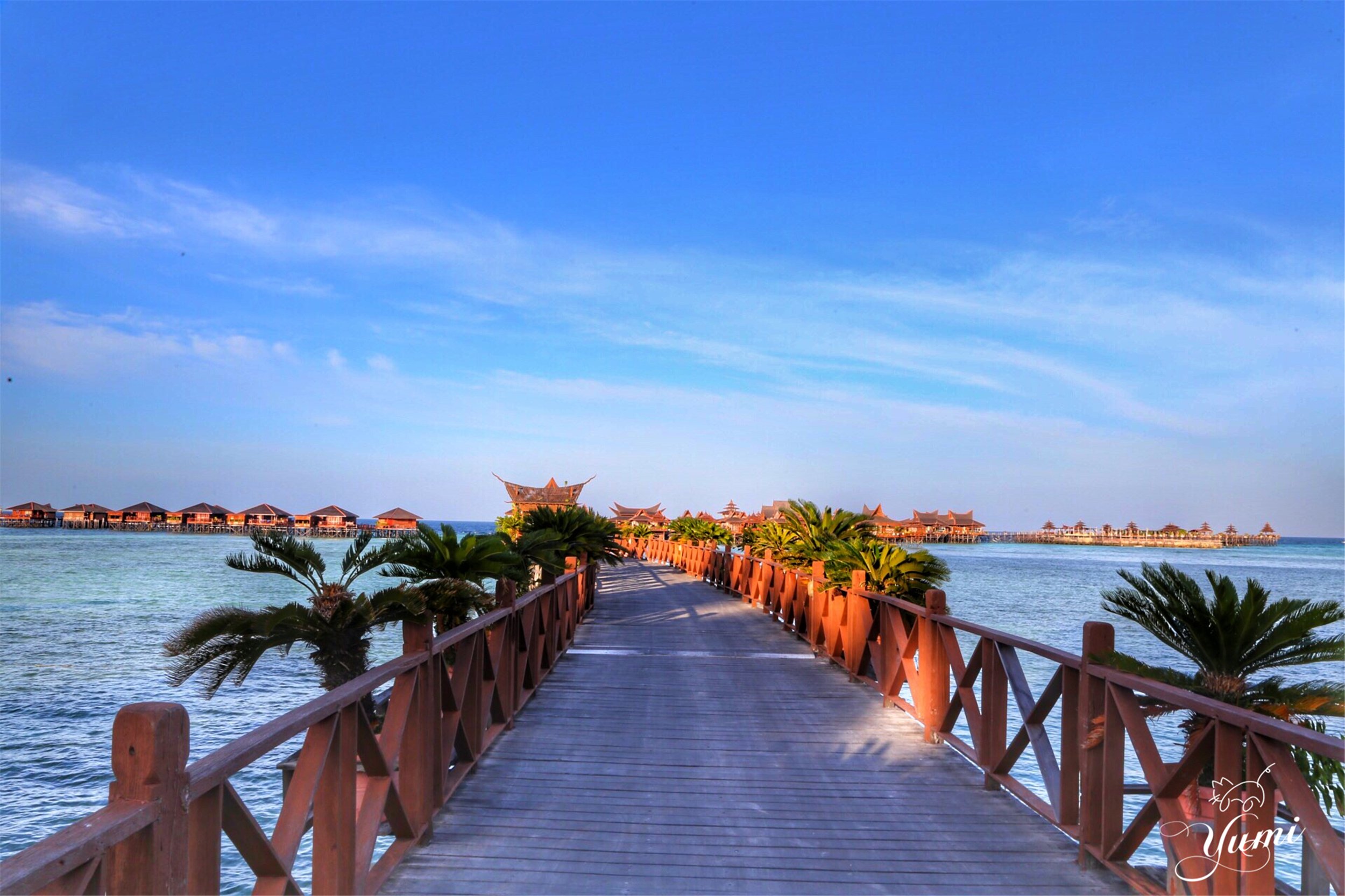 极限潜水平台~~~住在海中央,透过窗就能看到对面的水上度假村,海天都十分的蓝,仿佛一幅画。