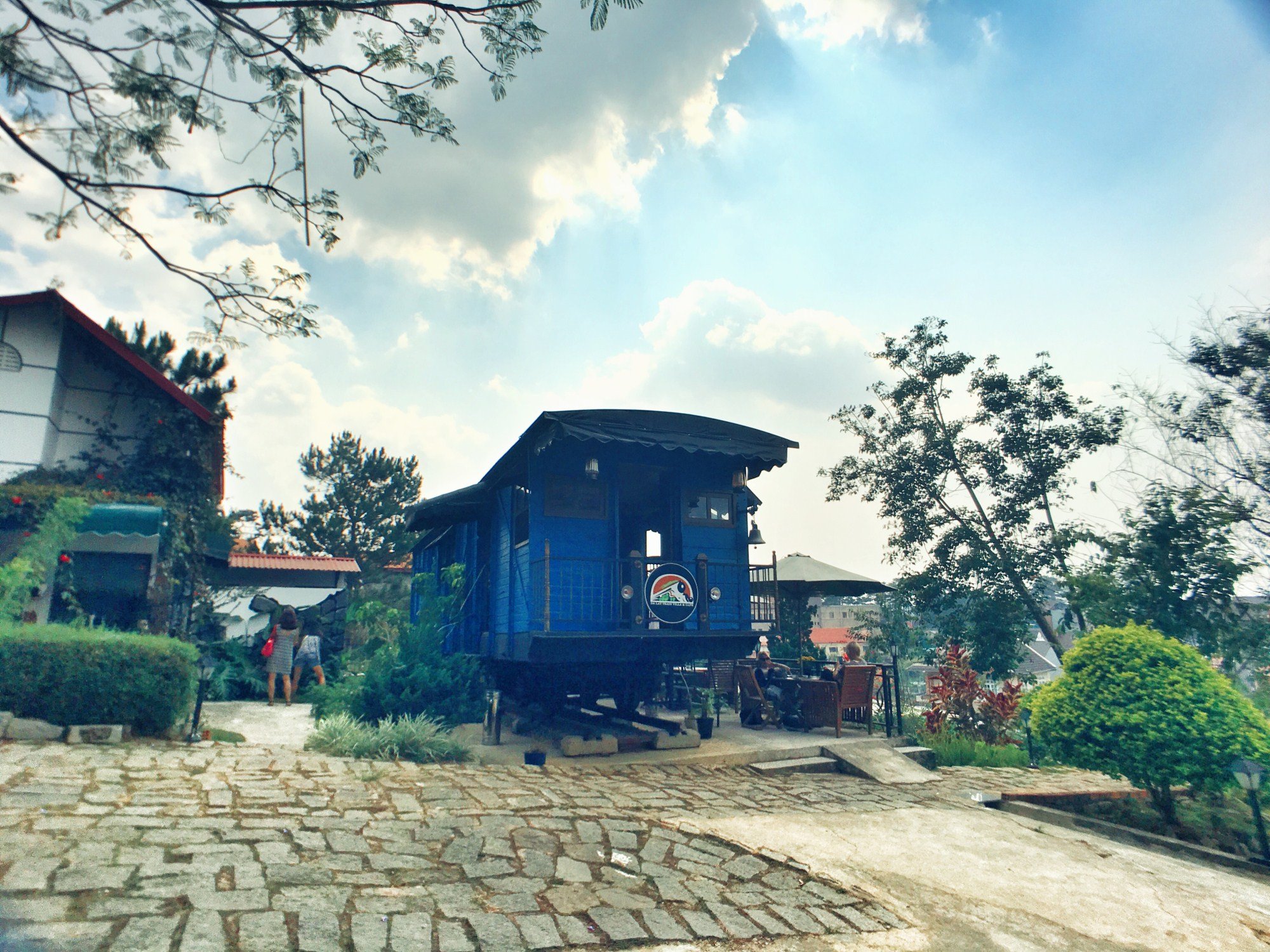 大叻火车餐厅(Dalat Train Café)的主体是一节蓝色的火车厢,这可是一节真的车厢,下面还铺着铁轨。