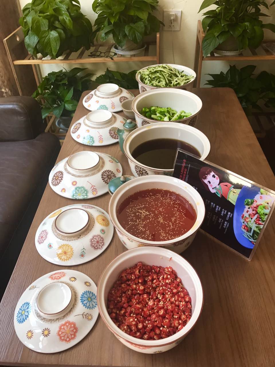 在朋友圈看朋友发说是网红店,老板是对双胞胎美女。这次来了之后果断导航过去了,地点很好找,就在夏夏旁边,紧邻是隔壁。 单品不多,但味道都超级一级棒!秘制擀面皮果然名不虚传,清爽、过瘾,小米椒赞赞哒!门头的花花也超级漂亮!喜欢!大赞美女这家店!