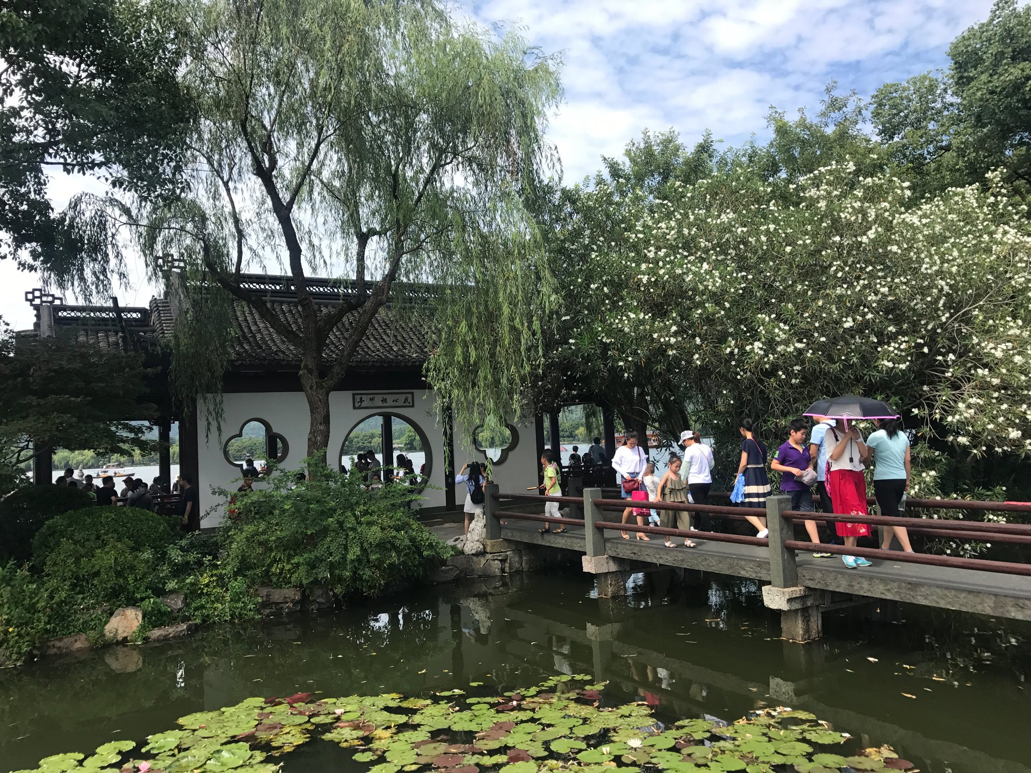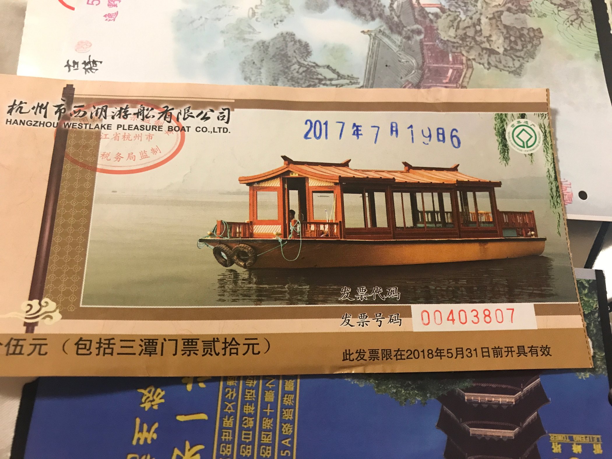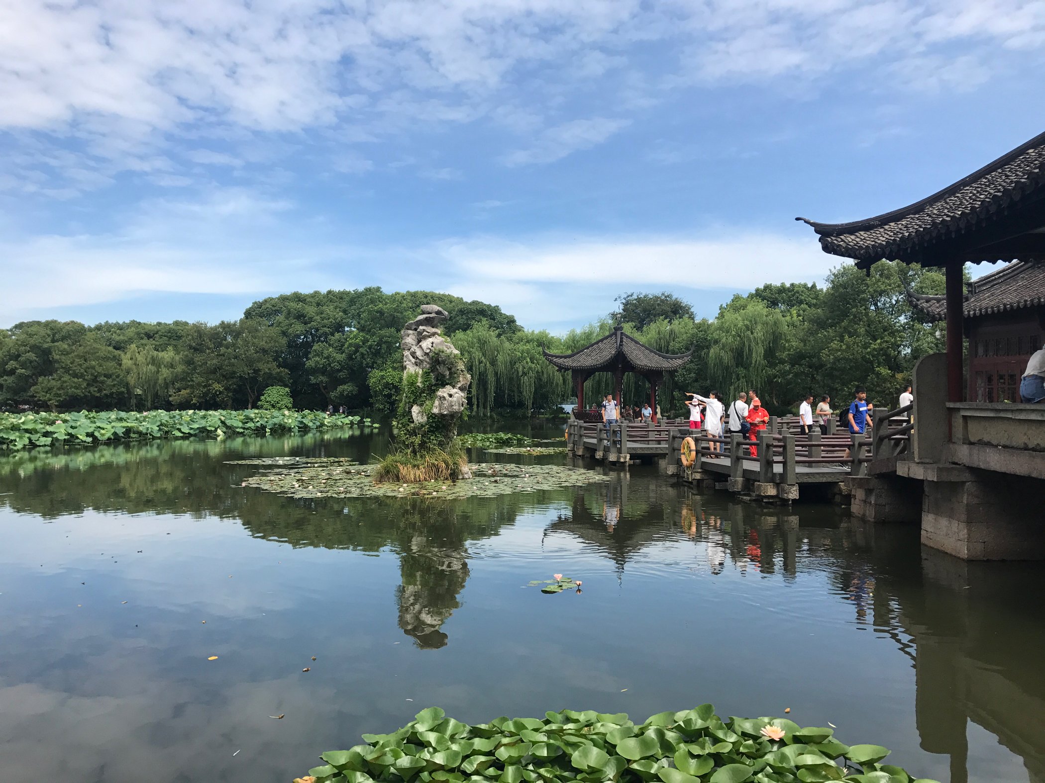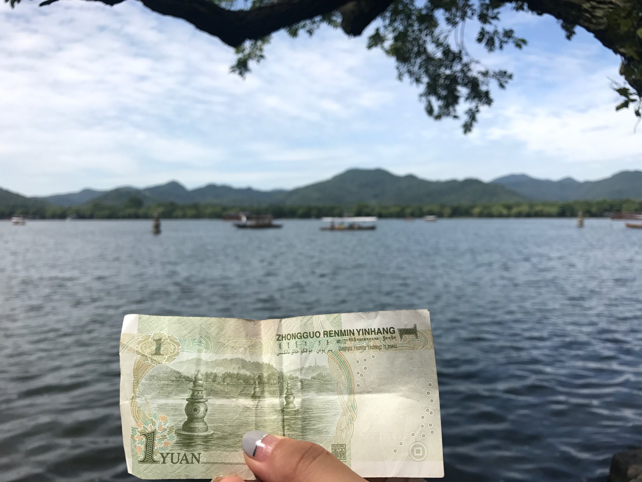 从曲院风荷出来一直走到湖边,沿湖有坐船去三潭映月经典的游船,好像是55一位可以坐船去到三潭映月景区,就是传说中一块钱纸币背面的景色,还是可以去看一看的。就是天气实在太热了注意防暑降温,小仙女一定要一定要擦防晒否则会黑好几度!!!