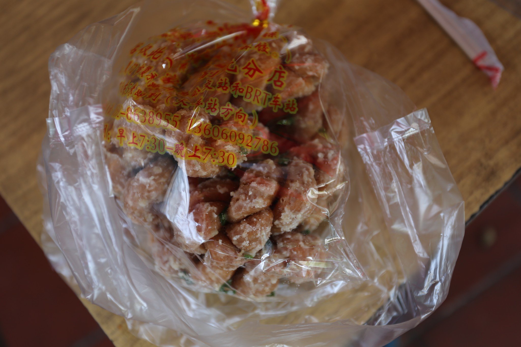 之前完全不知道这会是什么,也想象不出长什么样。当我们买到时也有点迷茫——这到底是什么做的。有点像糯米,做得像年糕一样,但是一点都不糯,有点嚼劲。鉴于是面粉制品会填满胃,也很难理解这哪里好吃,吃了几口就放弃了。4.5元一份。还买了蒜蓉枝,这个倒挺好吃,11块钱很大一袋麻花一样的东西。油葱粿颇让我联想到广州最正宗的黄xx凉茶,原味苦死了,就没见游客有喝完的~全当体验厦门饮食文化吧。