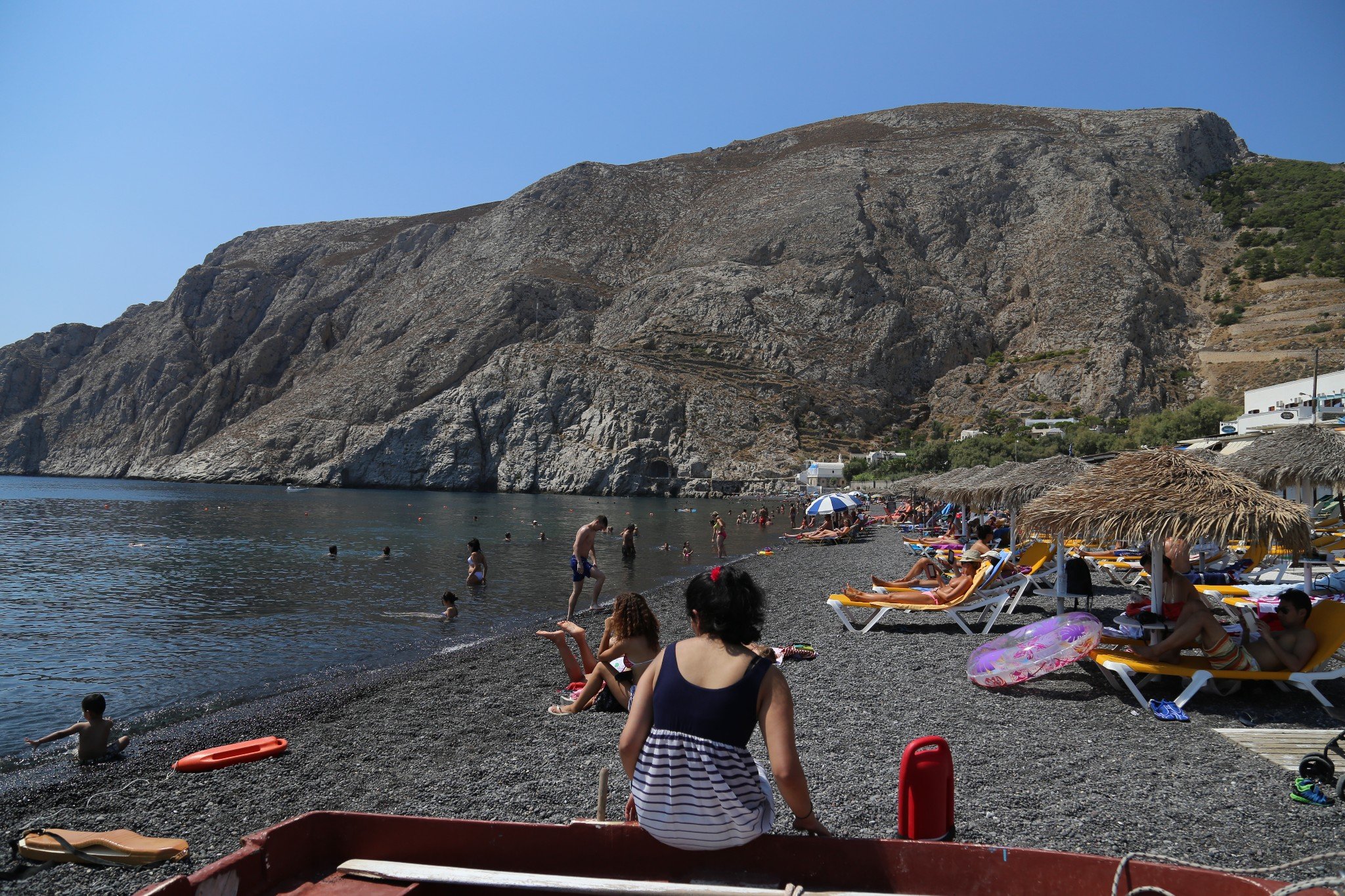 ...面最受欢迎的度假海滩,由于沙滩的颜色是黑色的,所以特别吸热,赤脚几乎不能站立在或者是坐在沙滩上