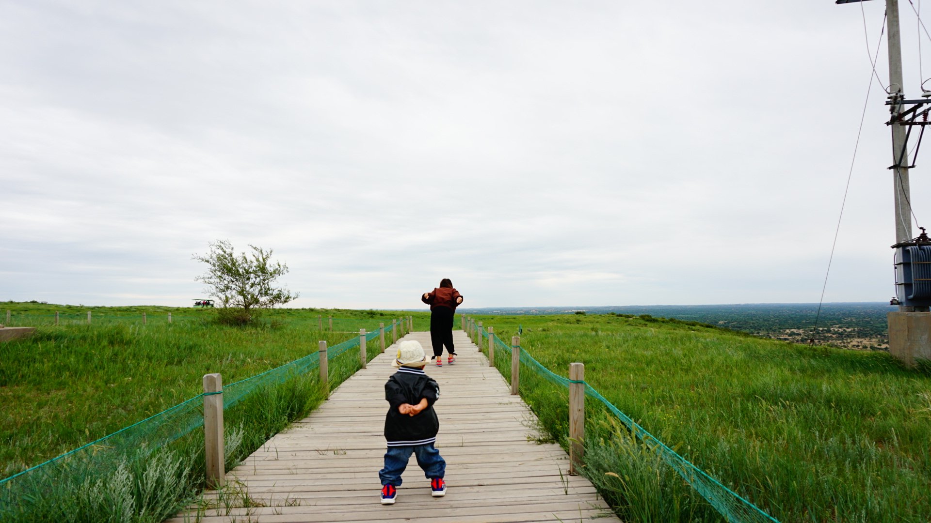 中午在石林游客中心吃午饭,那个饭真是又贵又难吃。饭后开始下一个地点:达里诺尔湖,途经热阿线和达达线100多公里,下午3点左右到达达里诺尔湖刚下车便下起了雨,刮起了大风,然后心想不能让天气影响了心情,于是给娃换完厚点的衣服拿着雨伞坐着游览摆渡车就上了曼陀山。