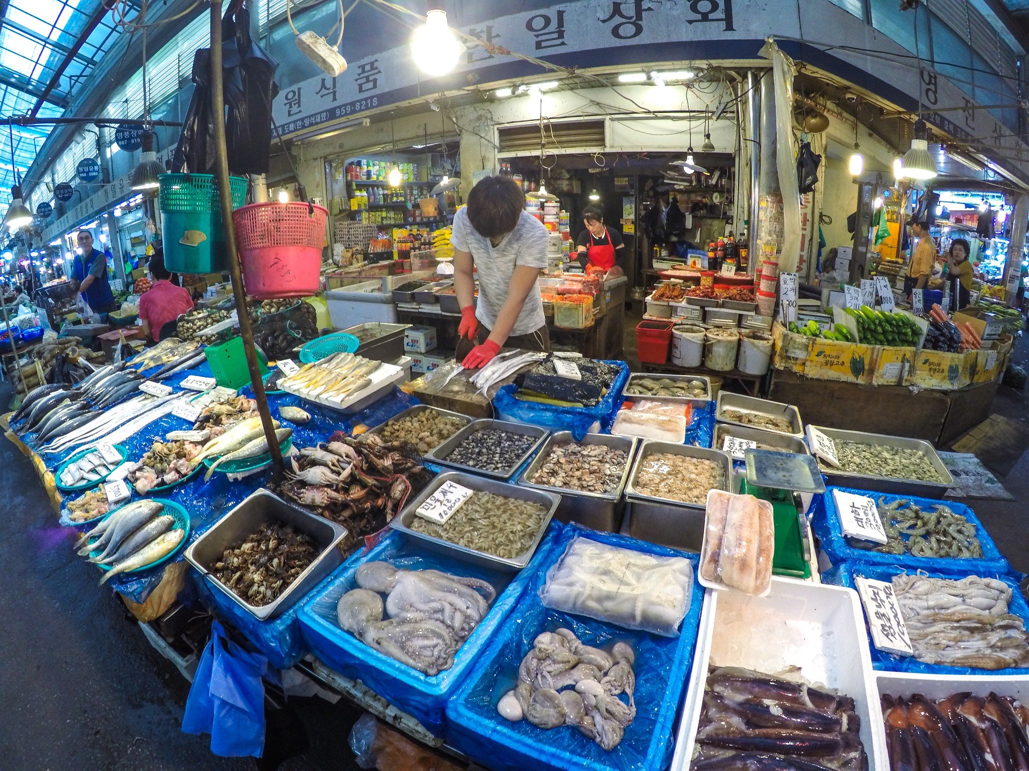 东京市场,等下要做韩餐,老师带我们来买食材