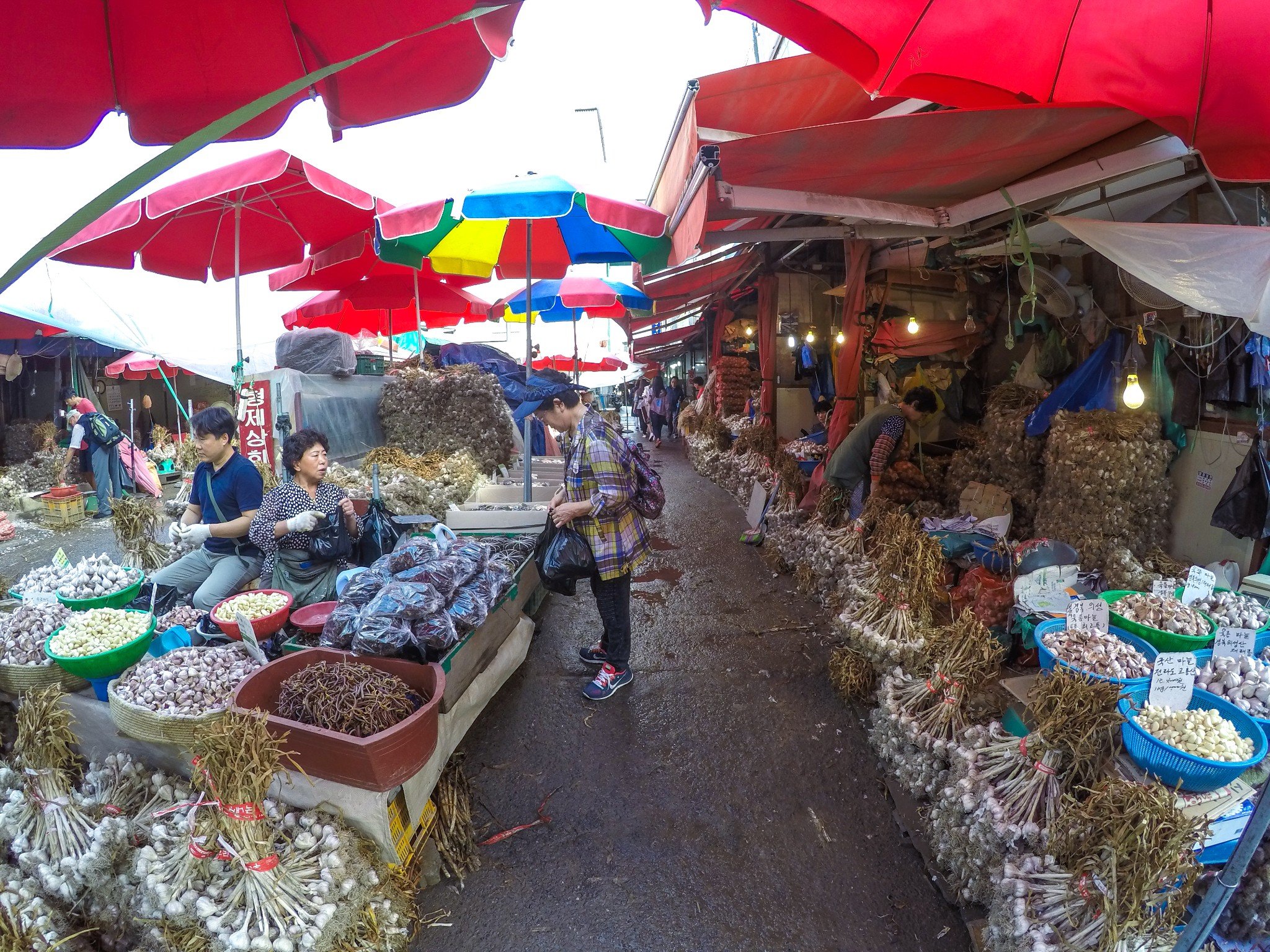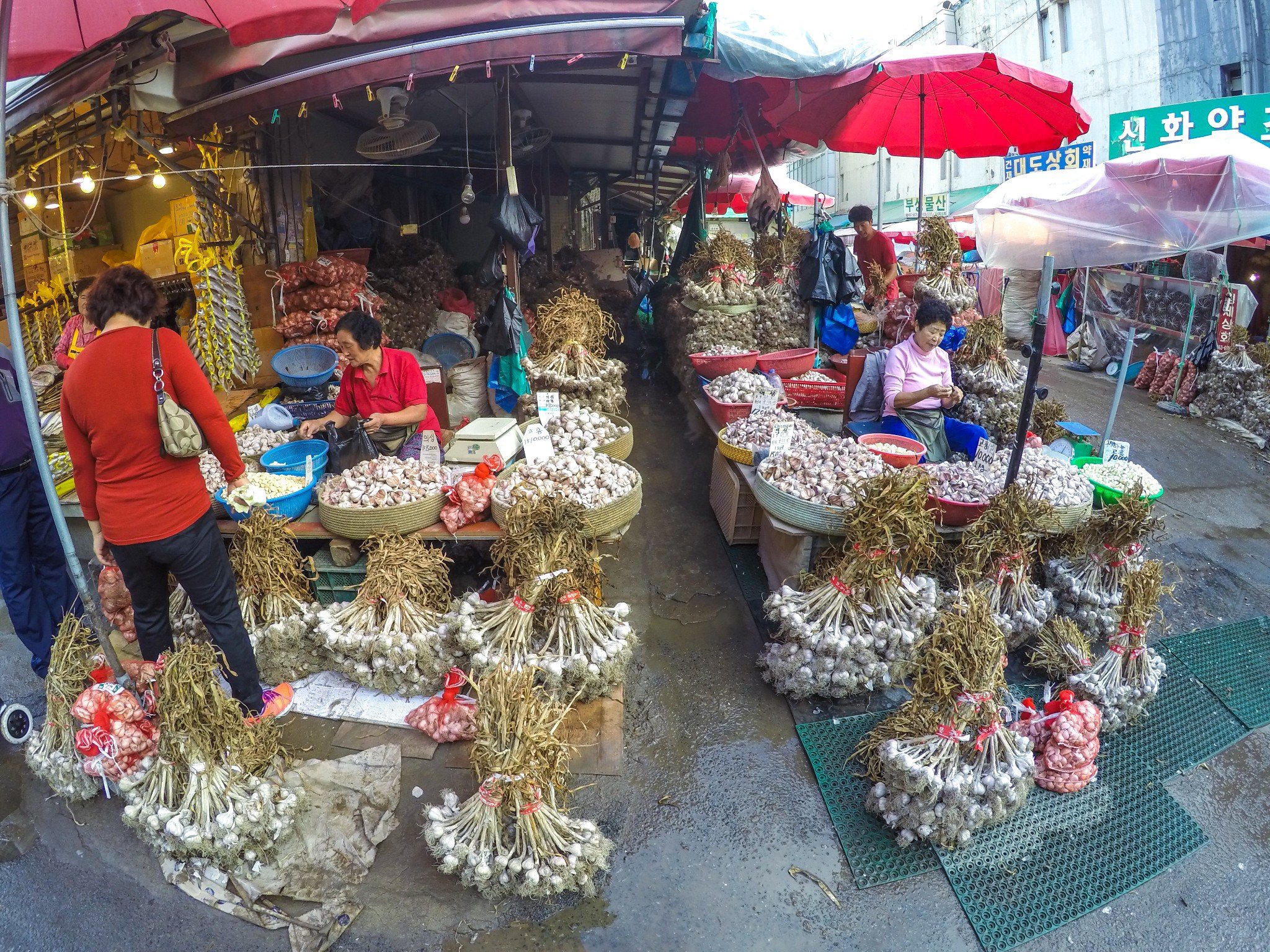 这条胡同都是买蒜的,蒜街奶奶们普遍都有着30年以上的经验,韩国人饮食对蒜需求非常大,在国内看不到这样的景象