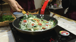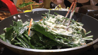 最好早上去,会让你照相,在10点最好到,超大厨来了,快来表扬我 海鲜韭菜煎饼,做它的时候有下雨的声音