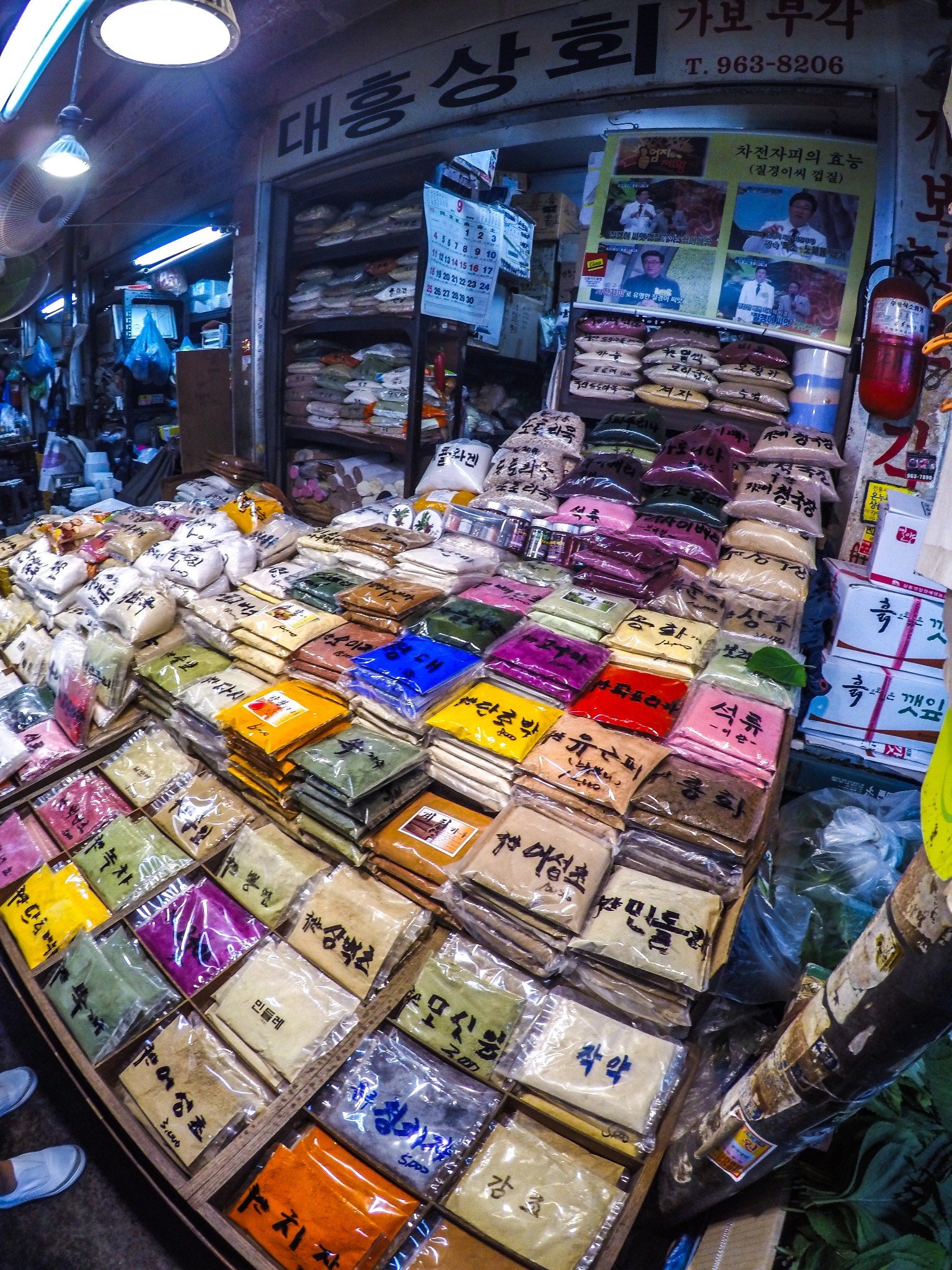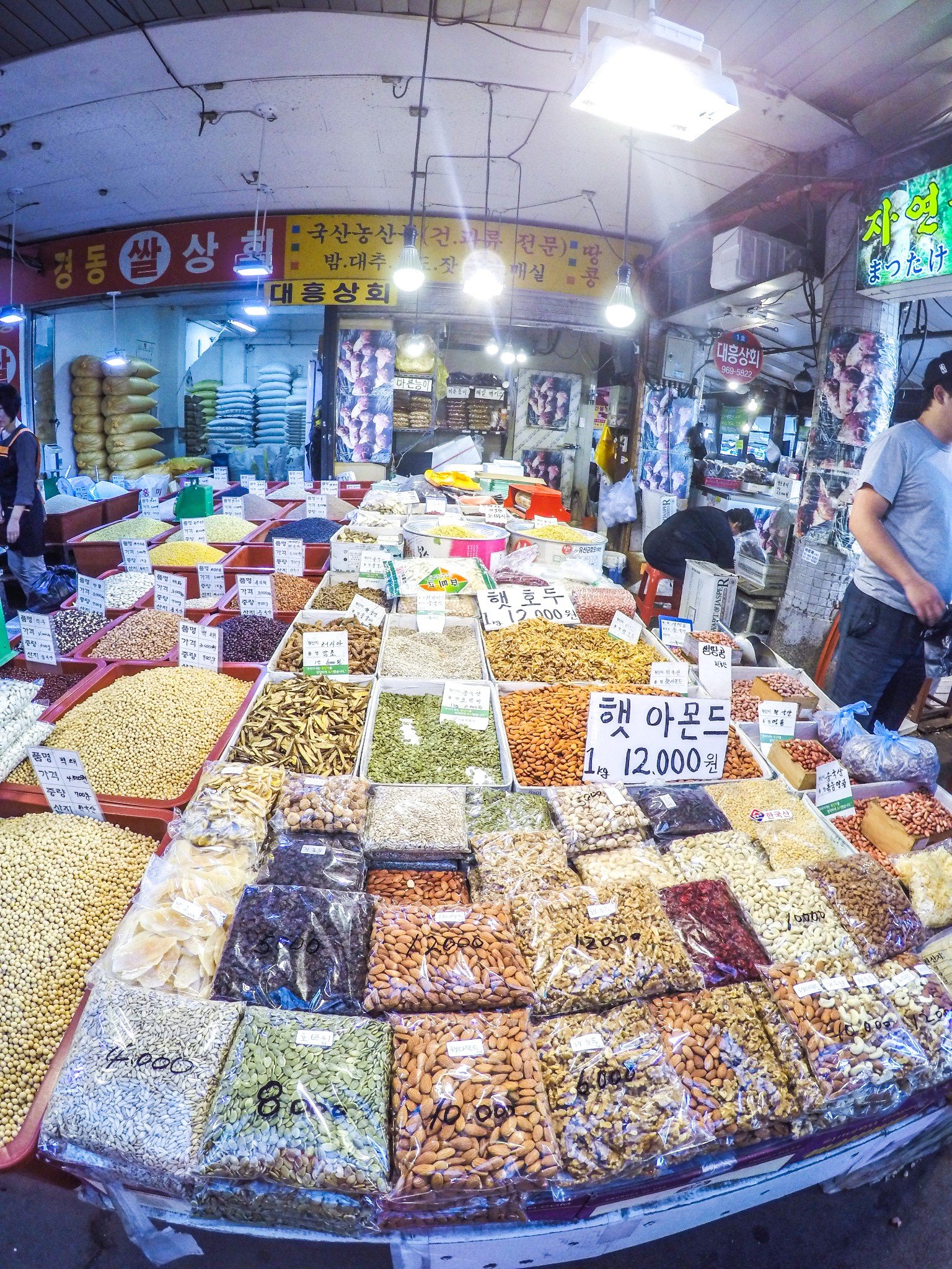 从衣服染色用的粉末和食物添加色的绿茶粉,百年草粉这里都有,最近韩国年轻人很购买绿豆粉和南瓜粉,还有韩国人很喜欢橡子果粉,它可以做一种口感很想凉粉的食物,非常特别的味道,所以在韩国很受欢迎