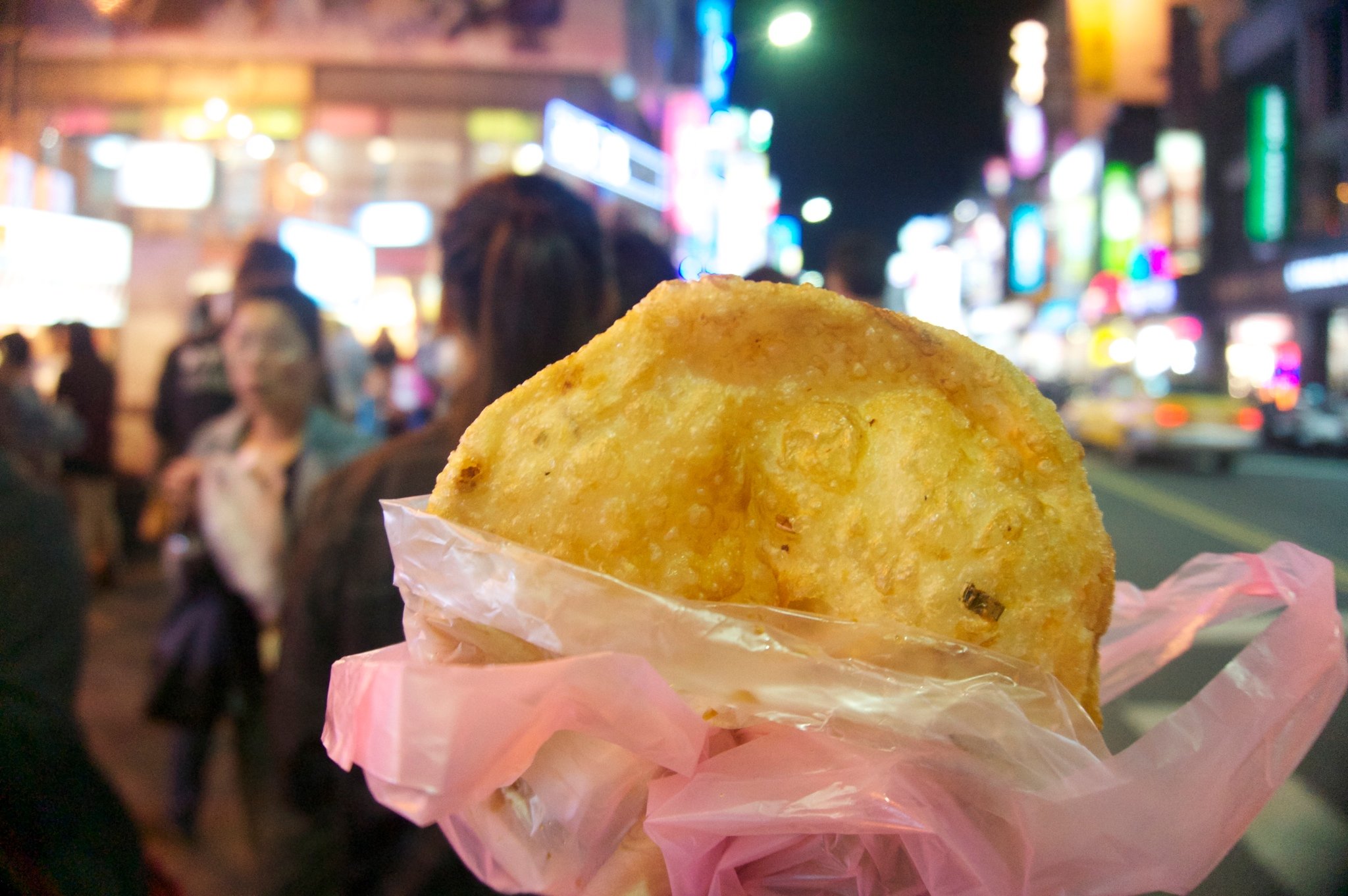 《等了四年的聚会,一个人的15天台湾环岛自由行》中提到的 郭家葱油饼 攻略郭家葱油饼 士林夜市必吃,必须点加蛋NT25郭家葱油饼士林夜市必吃,必须点加蛋NT25国内吃的葱油饼是煎的,台湾的是炸的,然后淋上蒜蓉酱油跟辣酱,油油的,咬下去味道浓厚,饼皮松软,还会爆浆!来自游记等了四年的聚会,一个人的15天台湾环岛自由行