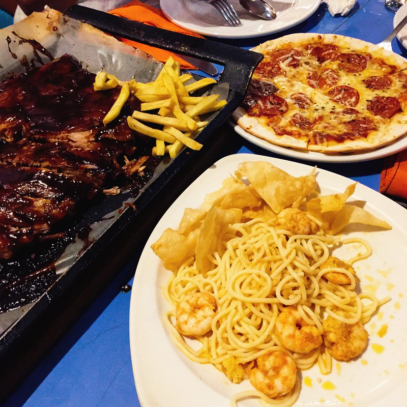 每次去东南亚旅行,mango shake总是每天必喝的饮料,这次在菲国我们呆了8天,就喝了8天的芒果沙冰网红餐厅的味道还是不错的,侏罗纪大猪排超大分量折合人民币不到70块,这物价太可爱了,他家主打西班牙菜,口味比较适合中国人