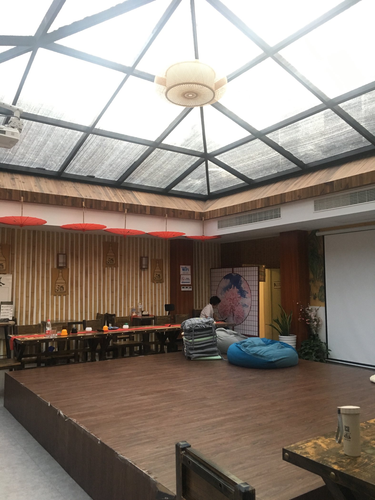这是旅店的公共场合,在这边可以看电影,玩狼人杀等时下流行活动
