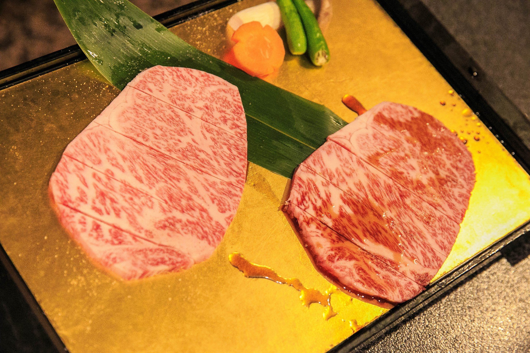 最重头的松坂牛肉!!一块只用盐来调味,一块酱汁调味。