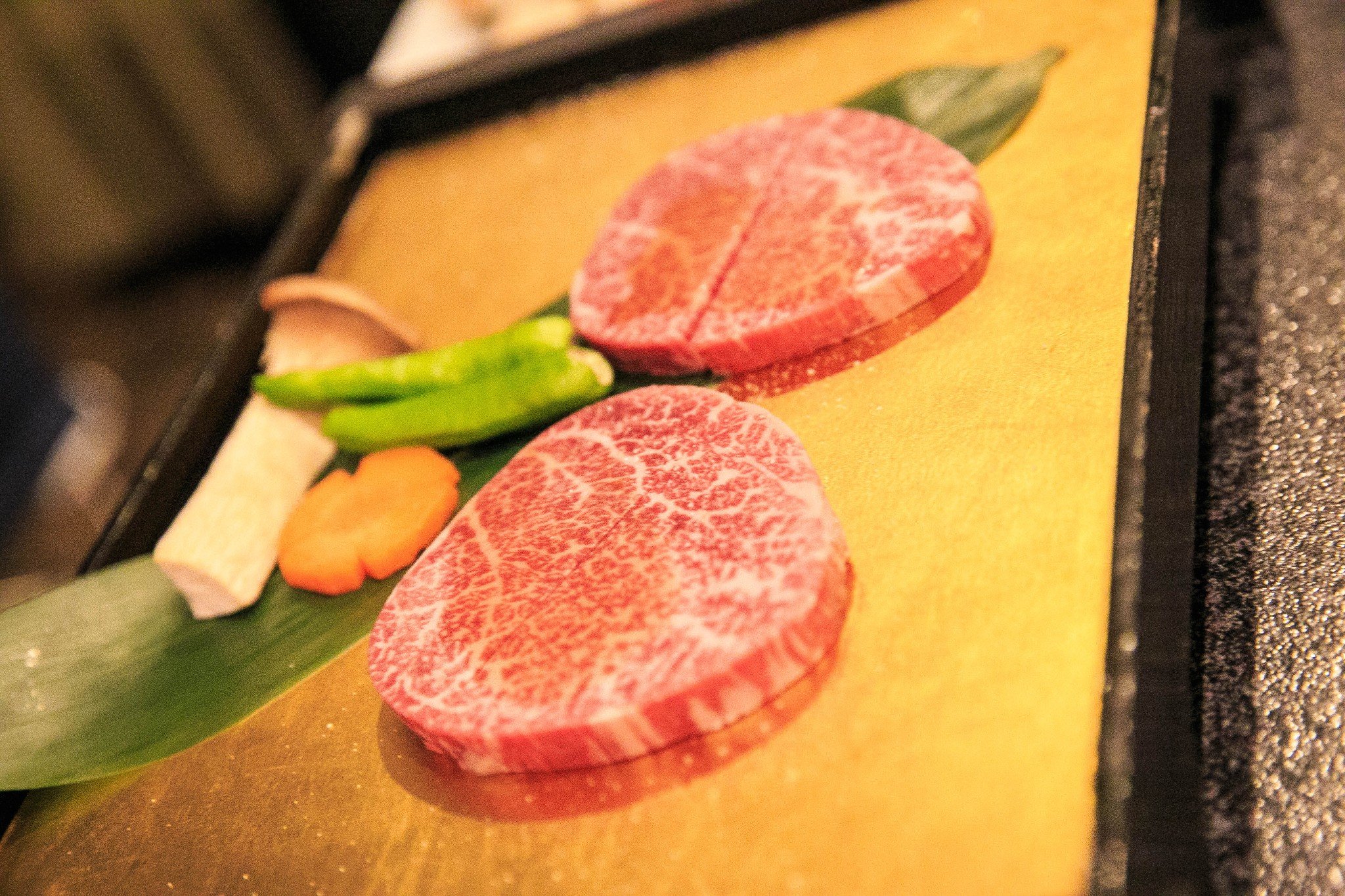 松坂牛肉的油脂非常丰富,看起来很漂亮,但吃起来可想而知会有点腻。