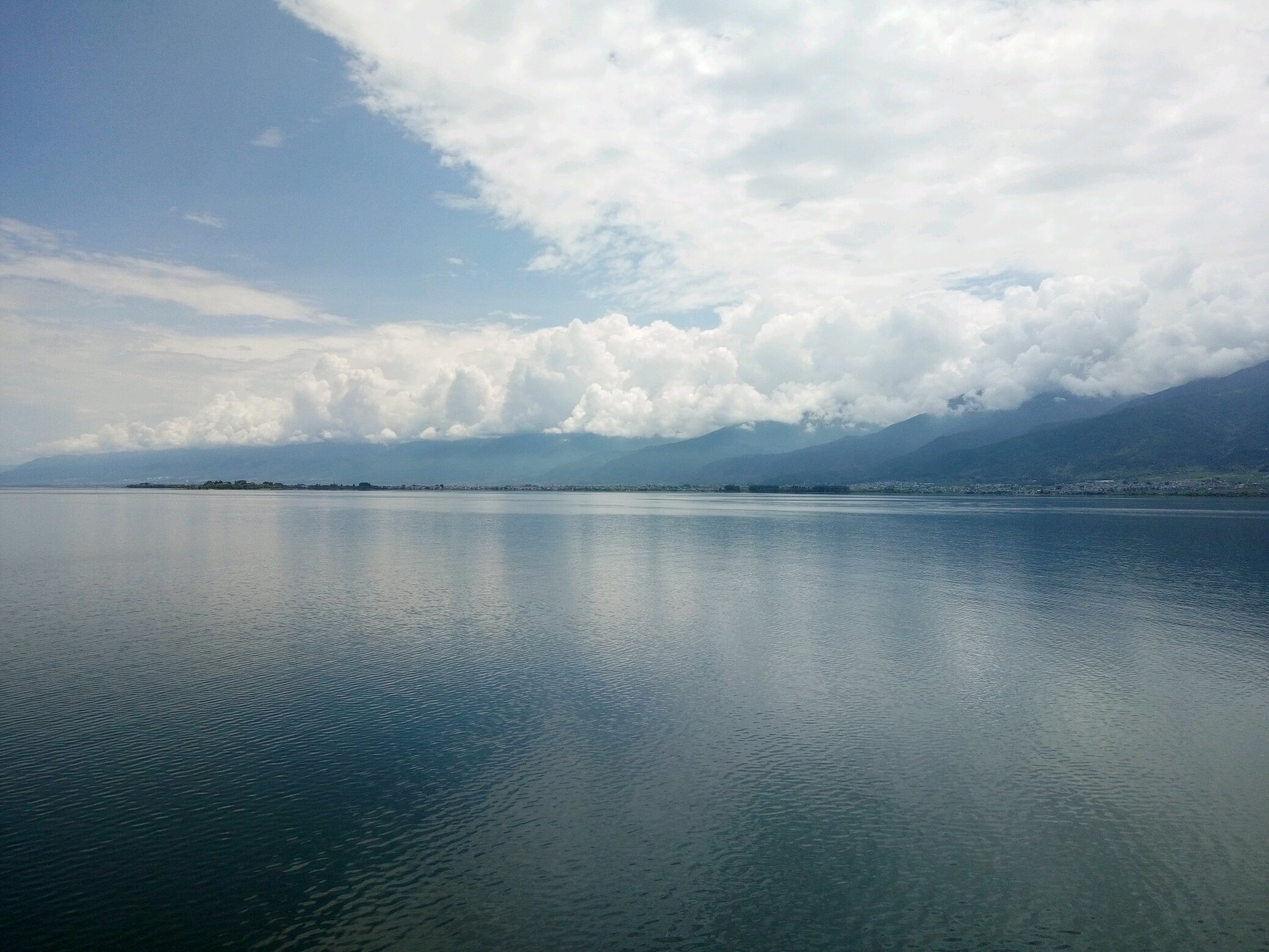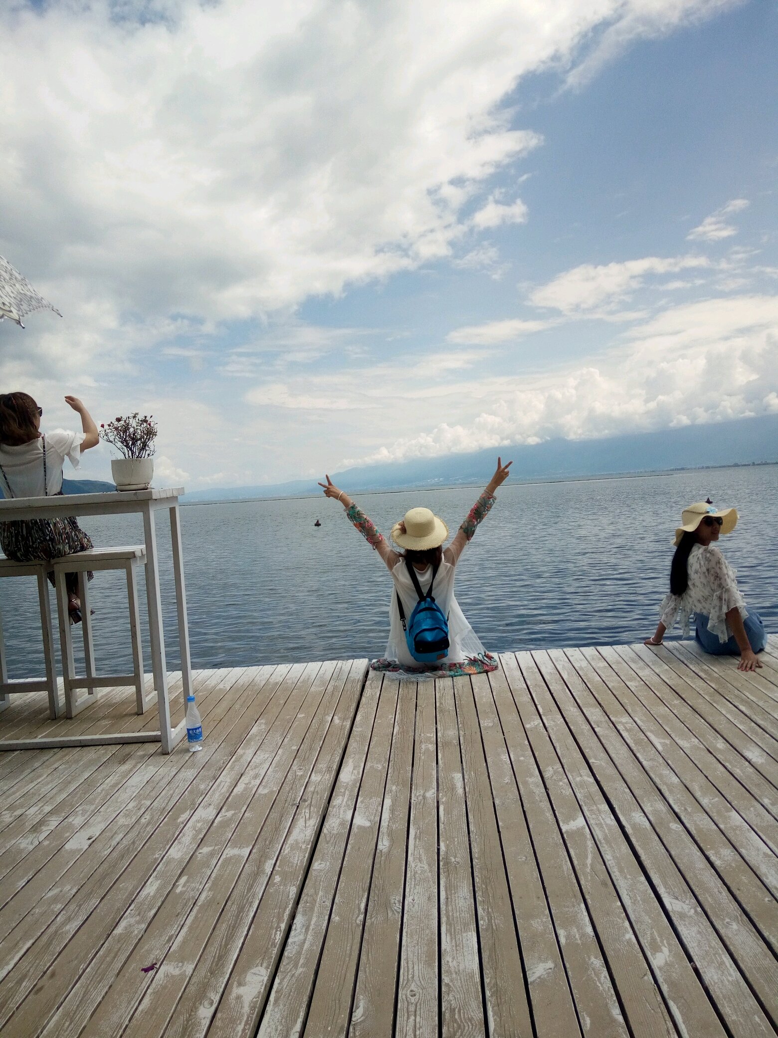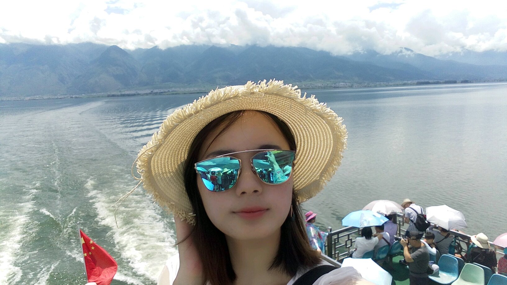 下午中午来到心心念念了好久的洱海,我们坐的是杜鹃号游轮,太阳很大,我们每人加了40块钱换到有座位的包厢,里面有吃的,可以唱歌,不过个人觉得这40没必要出,坐在外面吹吹海风也不错。