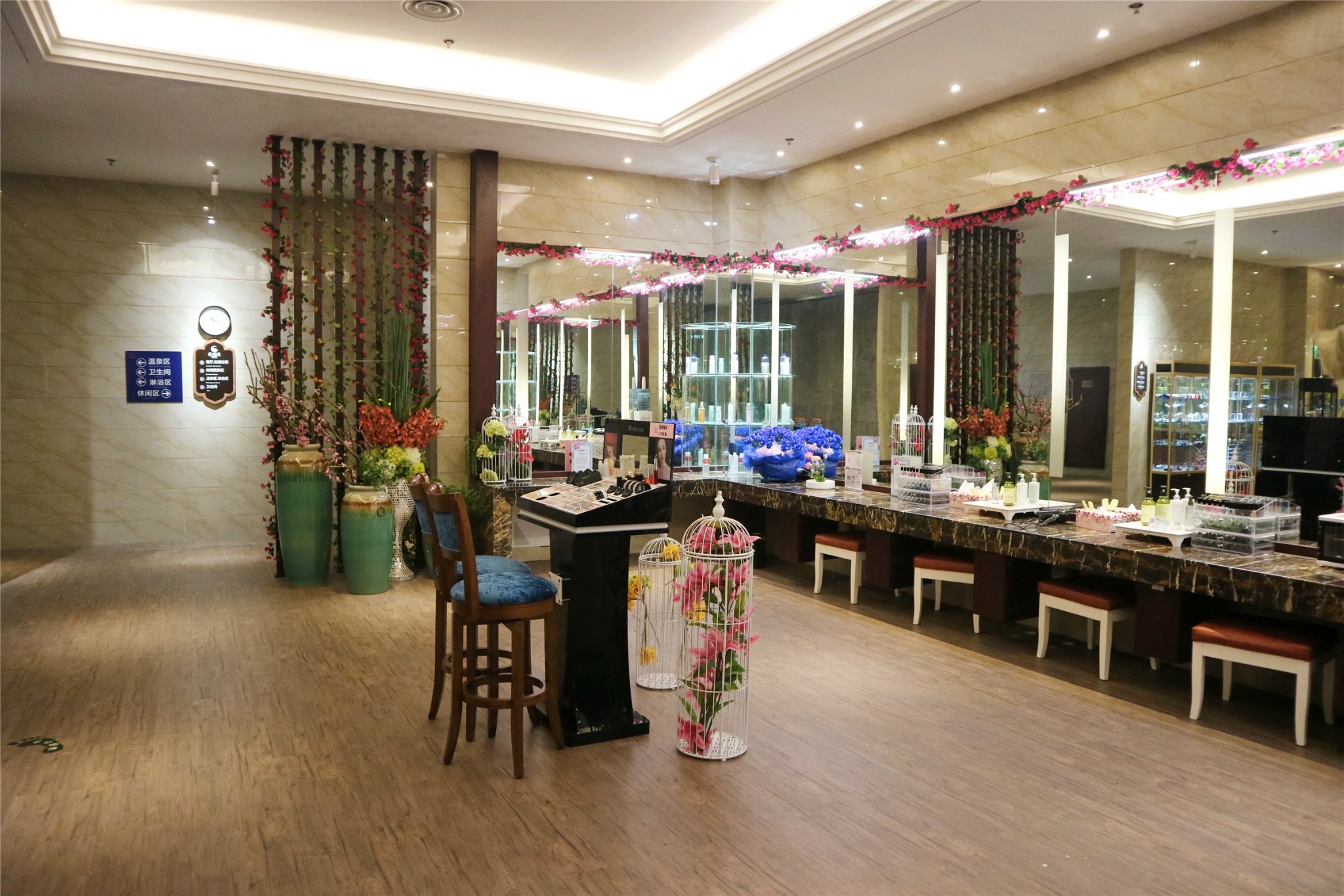 泡完温泉,更衣室内奢华的女性化妆区让爱美的女性在沐浴后仍能变回光鲜亮丽。这么贴心的设置,果然是深得女人心啊。