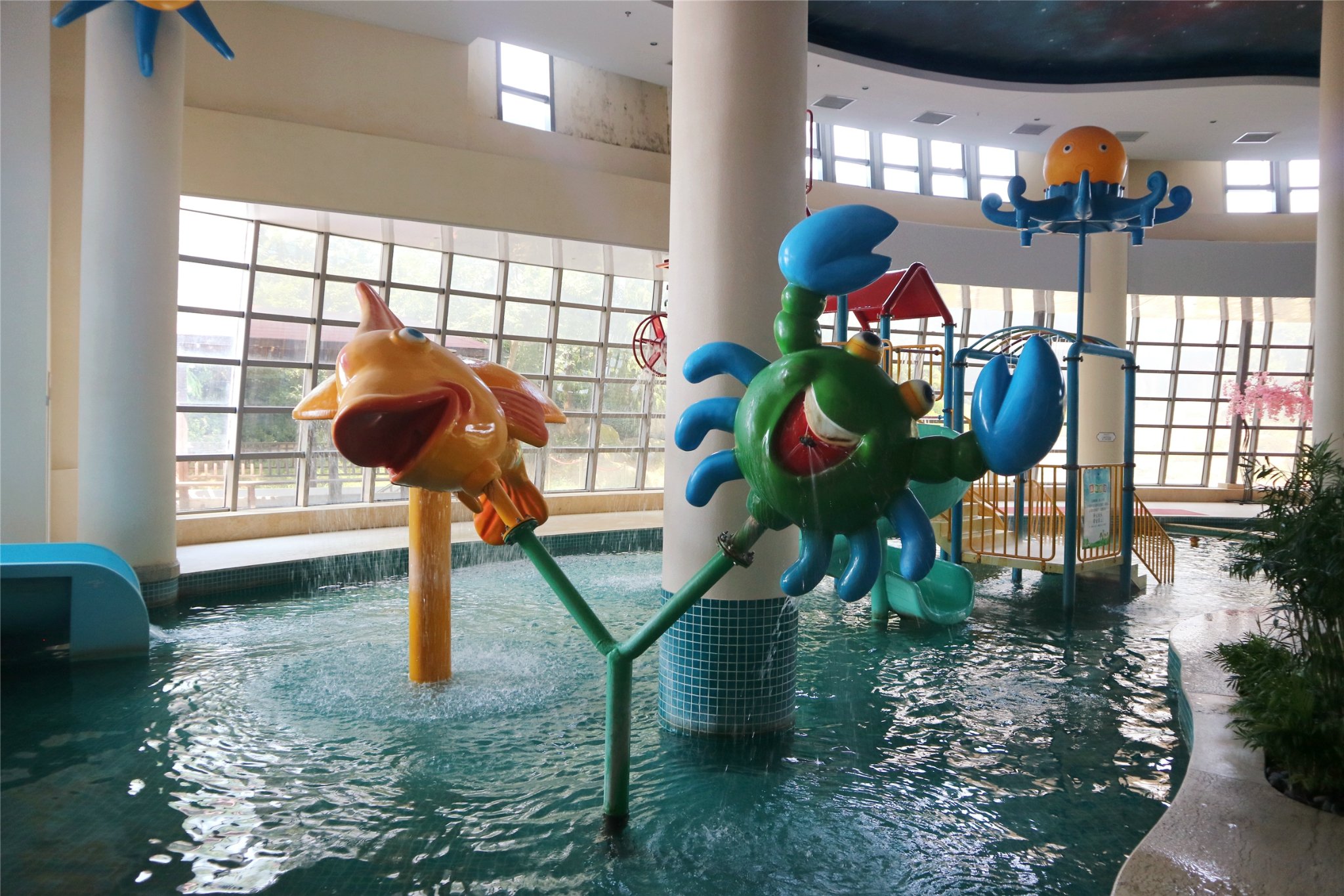 室外太阳直射,确实太热,不过我们可以在室内大厅里玩个够,别具特色的星空屋顶,无处不在的马尔代夫风情,恒温泳池、德式水疗区、童玩水乐区......让人流连忘返。