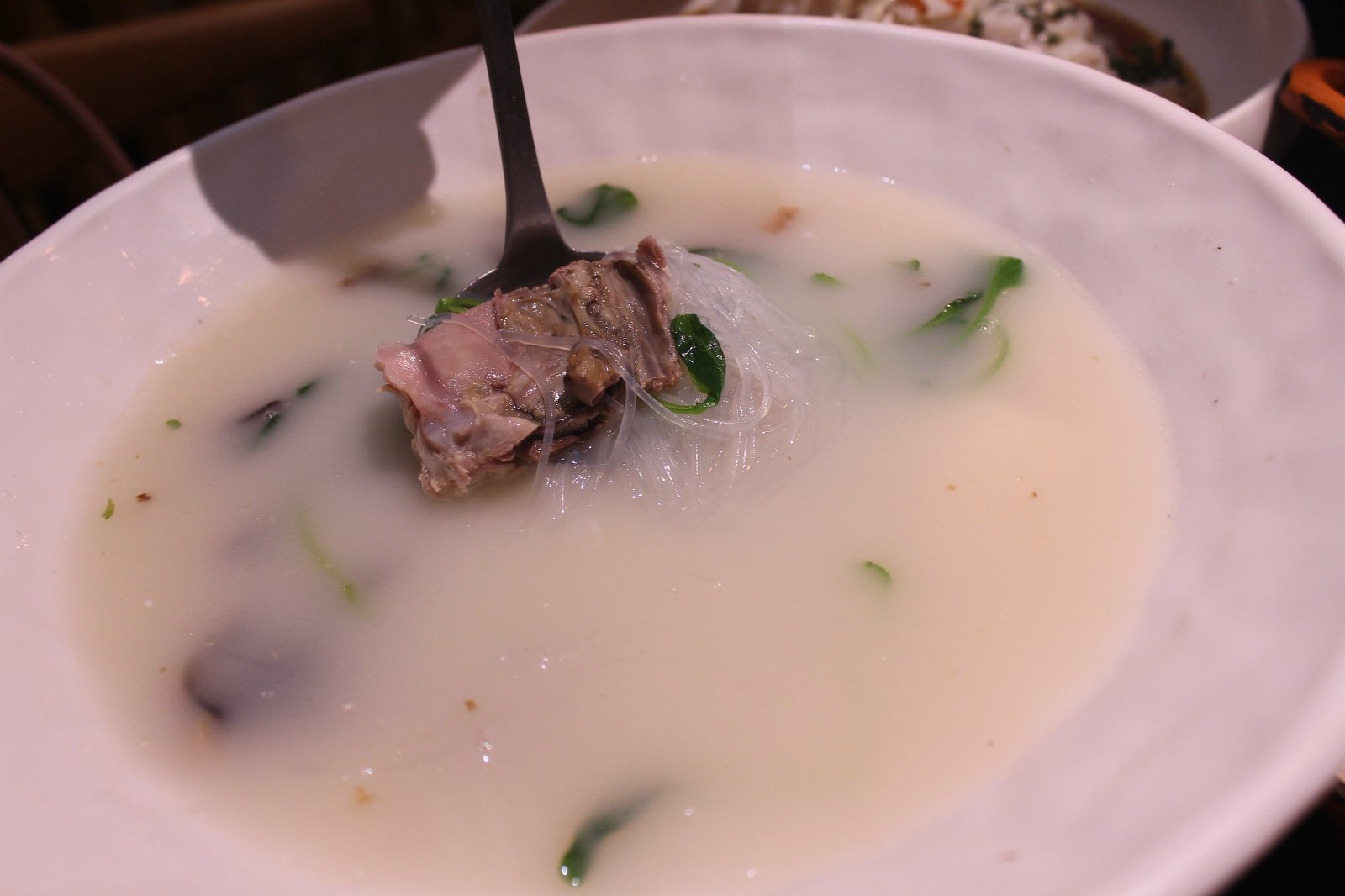 汤底纯白浓郁,香浓可口,滋味鲜美,精选一年以上老鸭熬制,确保汤头香浓没有腥味。粉丝筋道爽口,不愧为餐厅经典菜品。