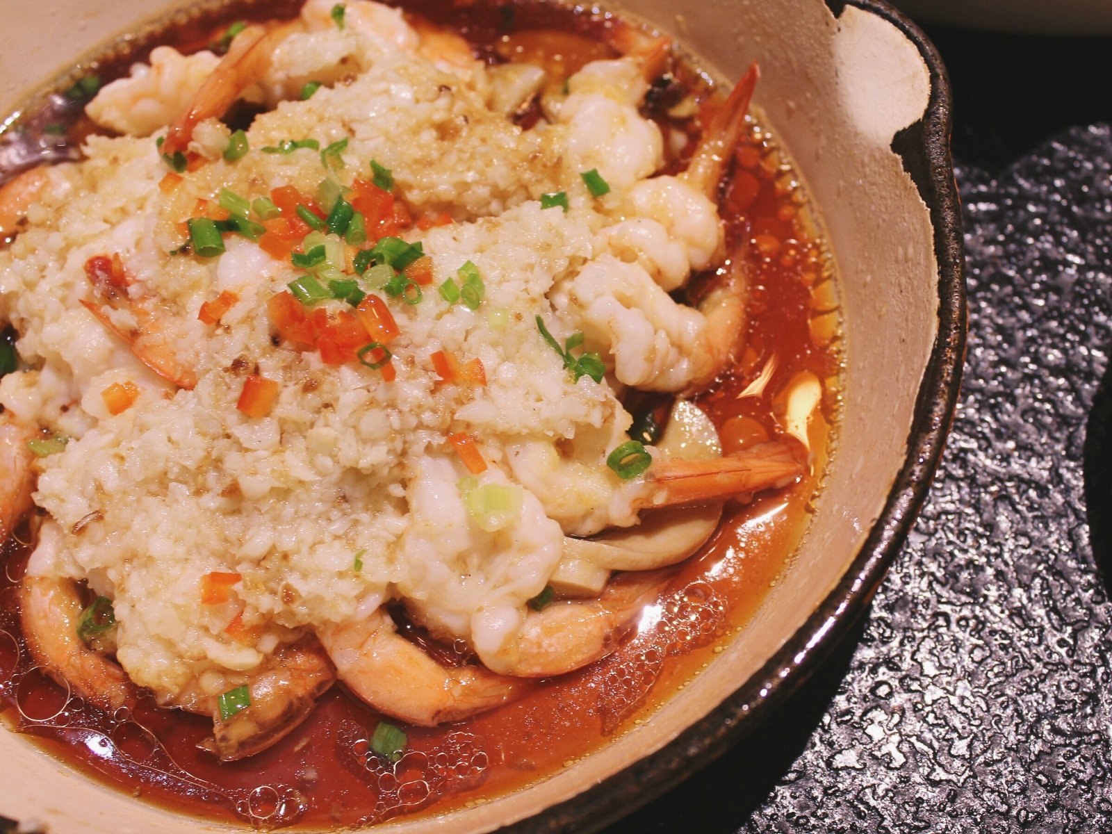 每一只虾都是剥好了露出白白嫩嫩的虾肉,捏着尾巴就可以一口一个,还不用弄脏手,虾肉紧实滑嫩,微微的蒜香很提味,铺底的蘑菇也很好吃。