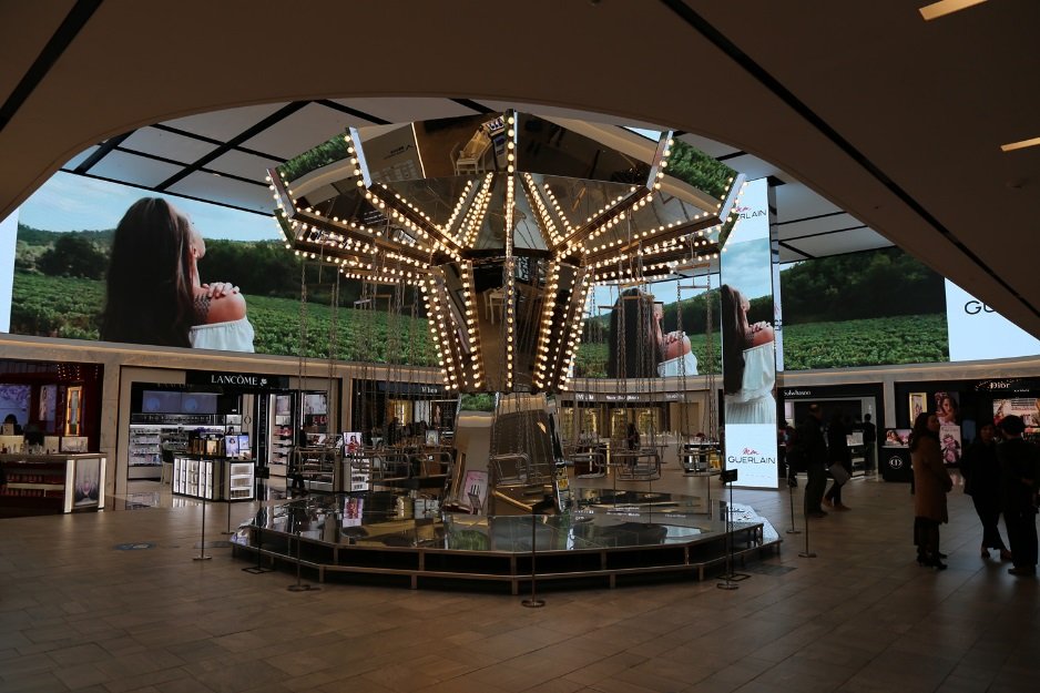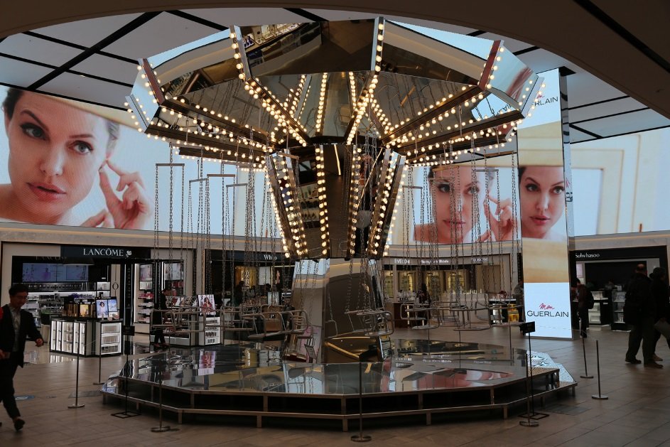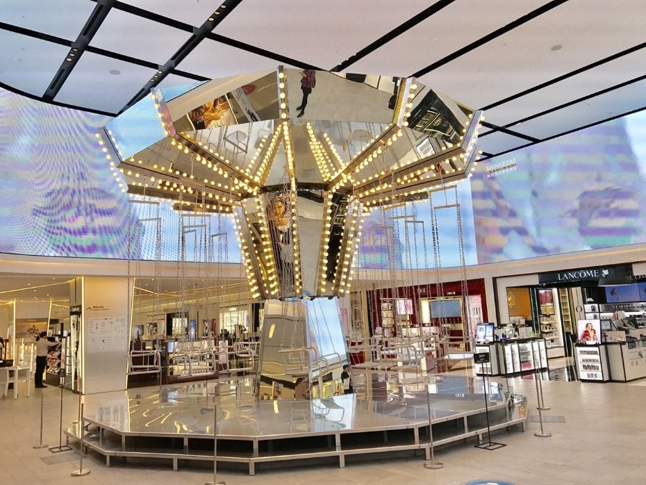 之前我们不是去看了卡地亚和LV的展出嘛,其实在新世界免税店也有着美美的艺术气息呢!这就是位于十层的旋转秋千啦,《蓝色大海的传说》就在这拍摄过,我们的全智贤女神坐在这思考人生的场面还记得吗?新世界免税店代言人的赶脚就是不一样啊!