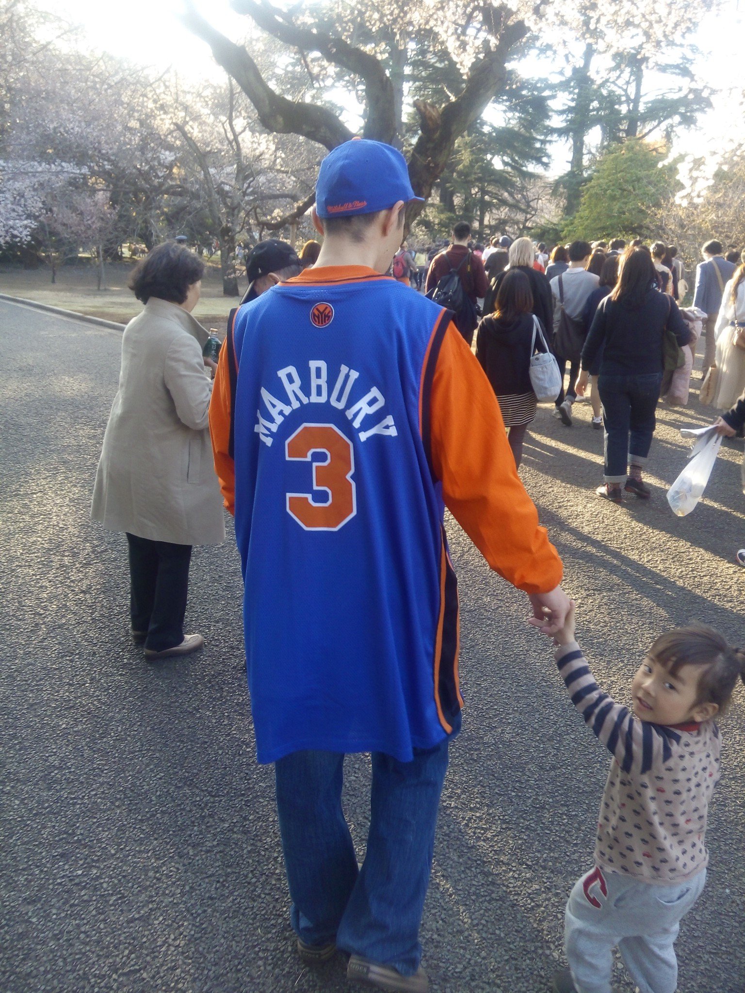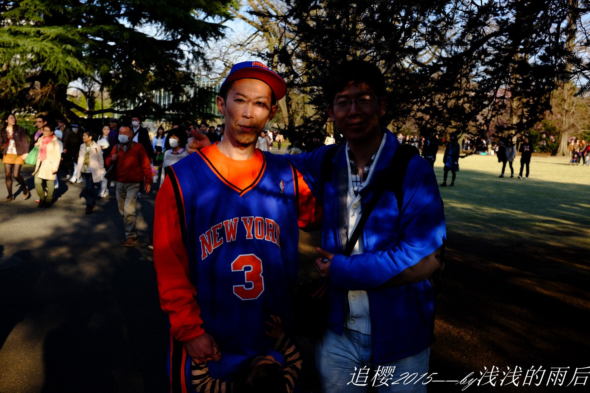 看完樱花继续往外走,也已经有工作人员拿喇叭喊要闭园了。走着走着突然看见一个大叔领着小孩儿逛公园,竟然穿的是老马!虽说是尼克斯队服吧不过依然果断上去求合影啊~即使他其实貌似听不懂英文吧。。。。。。。