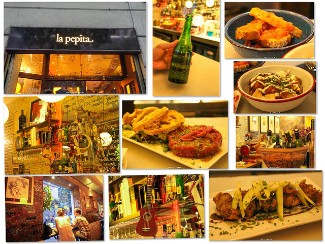 【La Pepita】旅游书上推荐的餐厅 我们在Barcelona等了有快一个小时,这家餐厅真的超级火 这是年轻的家乡风味菜,老板特别热诚,感觉酱汁蛮出色 餐厅的装横体现了新旧交融的感觉,工业风木的设计风格 有Casual有活力,我们就被安排在酒吧台,挤得很 不过气氛相当热闹,我们随便点了几道Tripadvisor上推荐的 因为菜单是西班牙语,我们也基本上看不出特色来 但后来我被他们吐槽说,不能相信旅游书,所以接下来就都是随便吃