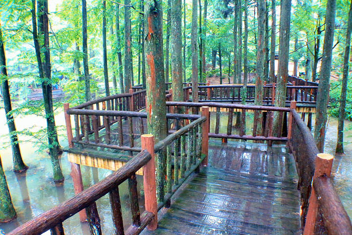 华顶国家森林公园,是天台山风景区的中心,这里也是海拔最高的地方。就算在炎热的夏天,这里也空气宜人!是绝佳的避暑圣地,千亩杜鹃林让这里更有韵味,同时森林探险项目也让喜欢挑战的你,找到乐趣。 这个景区是整个天台山风景区海拔最高的地方,据说在冬季的时候,这里是看的到雪景的,在浓密的树林上挂满了树挂,一片白茫茫的盛景,十分的迷人。 我来的这天,刚好有点飘雨,山间的雾气很大,置身森林中,仿若步入的仙境一般。飘飘欲仙的感觉,让我很是舒服。这个景区的客流量也是相对较少的,也让这片森林里多了一份宁静。 同时这里还有浙江首家“树上飞跃”主题公园,有很不错的户外拓展项目,很适合亲子出游。 山中的茶室,对于渴望慢生活的人来说,也是一个很棒的体验。在这里放松身心,细细品一壶清茶,大口呼吸山间的空气,让时间就这样慢下来。 同时这里的千亩杜鹃林,也是一个奇景。5月时盛开,每年5月间,进入华顶景区,云锦杜鹃在路边、道旁、岩上、林间、坡地上,星星点点,丛丛簇簇,漫山遍野,似彩云洒落,主要成林分三大处,各有特色。归云洞前千树簇拥,花海一片;东茅蓬药师庵则独自伫立,或姐妹相处;拜经台附近却三五成群,丛丛簇簇,姿态万千。