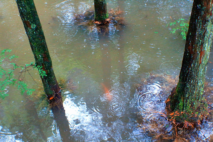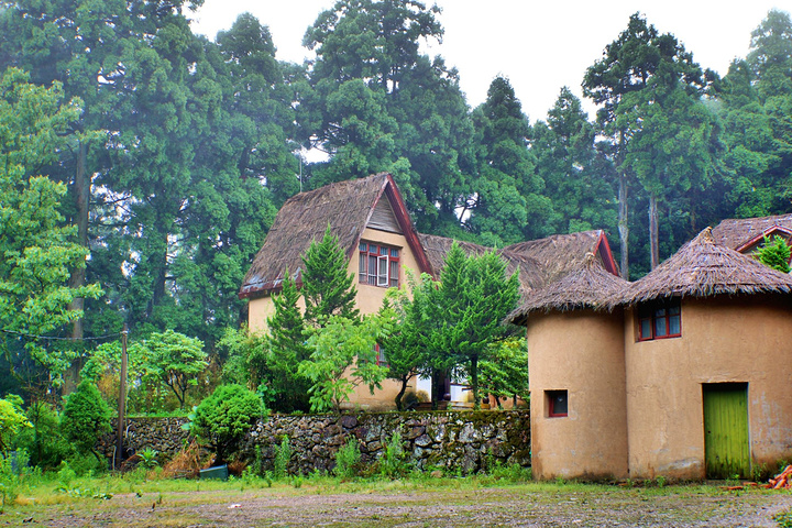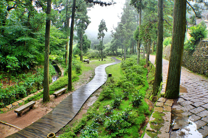 我来的这天,刚好有点飘雨,山间的雾气很大,置身森林中,仿若步入的仙境一般