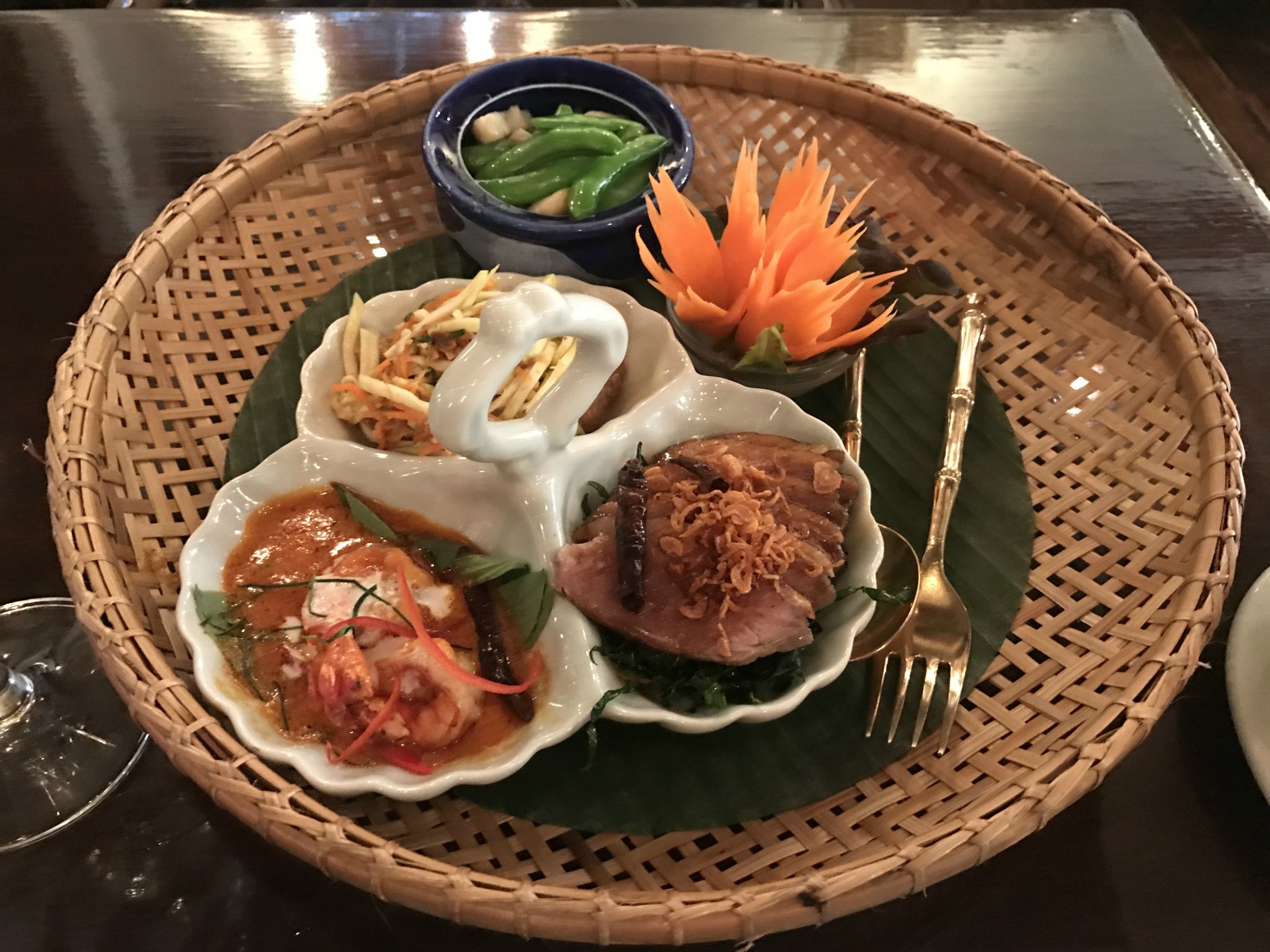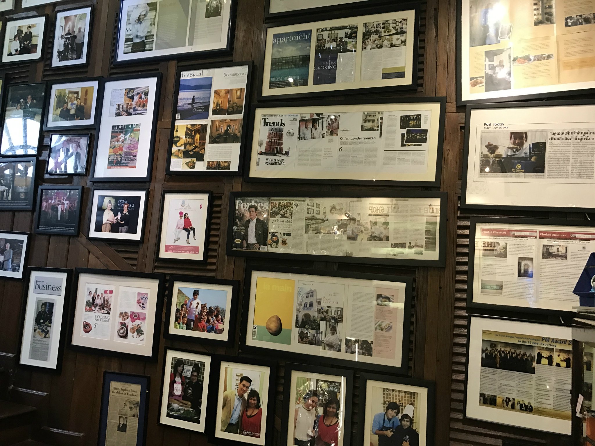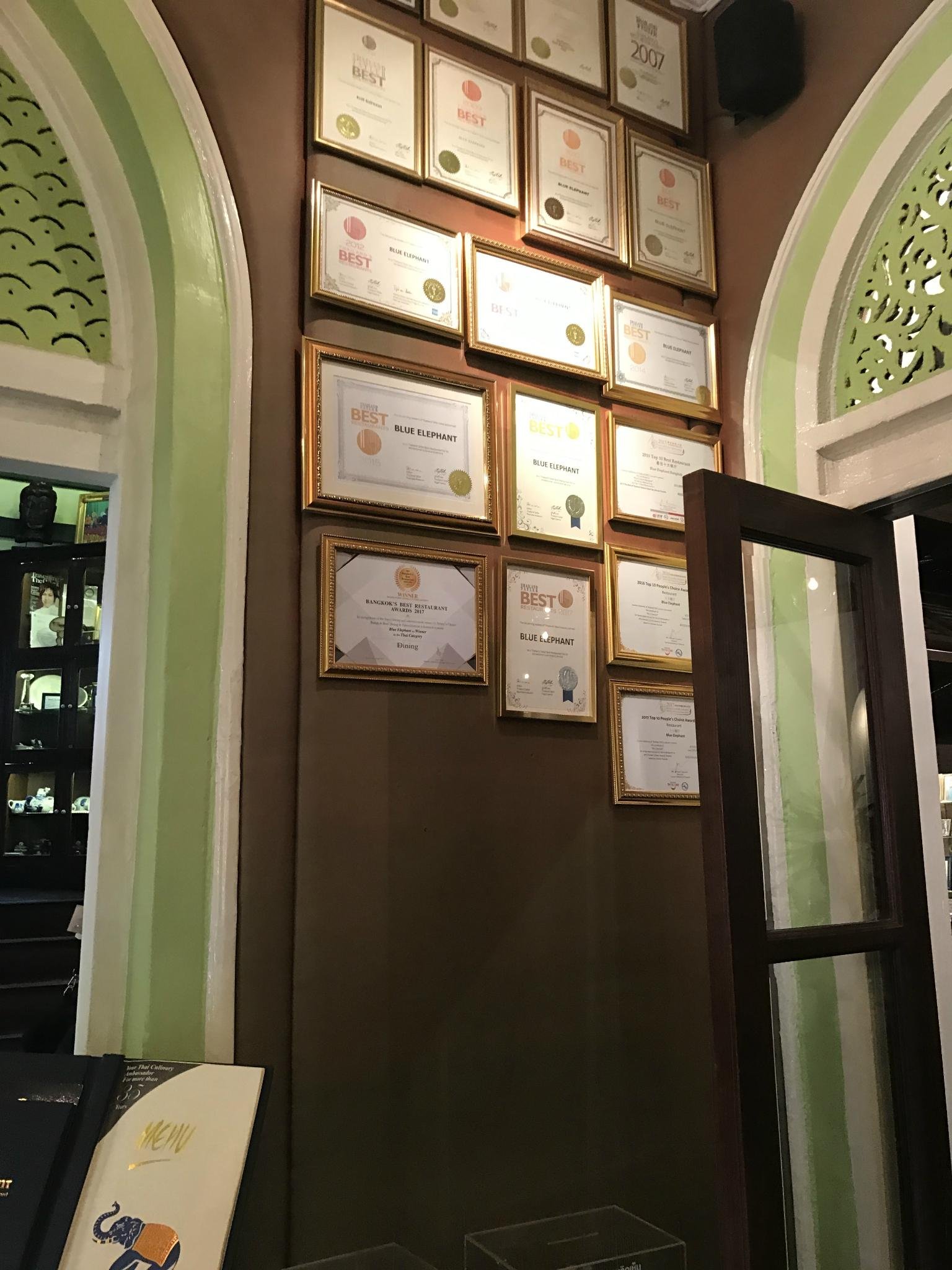 推荐理由:蓝象餐厅可是曼谷最著名的泰国料理餐厅,因为是米其林餐厅,所以名气很大。不过那天中午过去,没有预约,没多久就给我安排了位置,灰常开心。照片墙和一张张的荣誉证书述说着蓝象不平凡的历史。