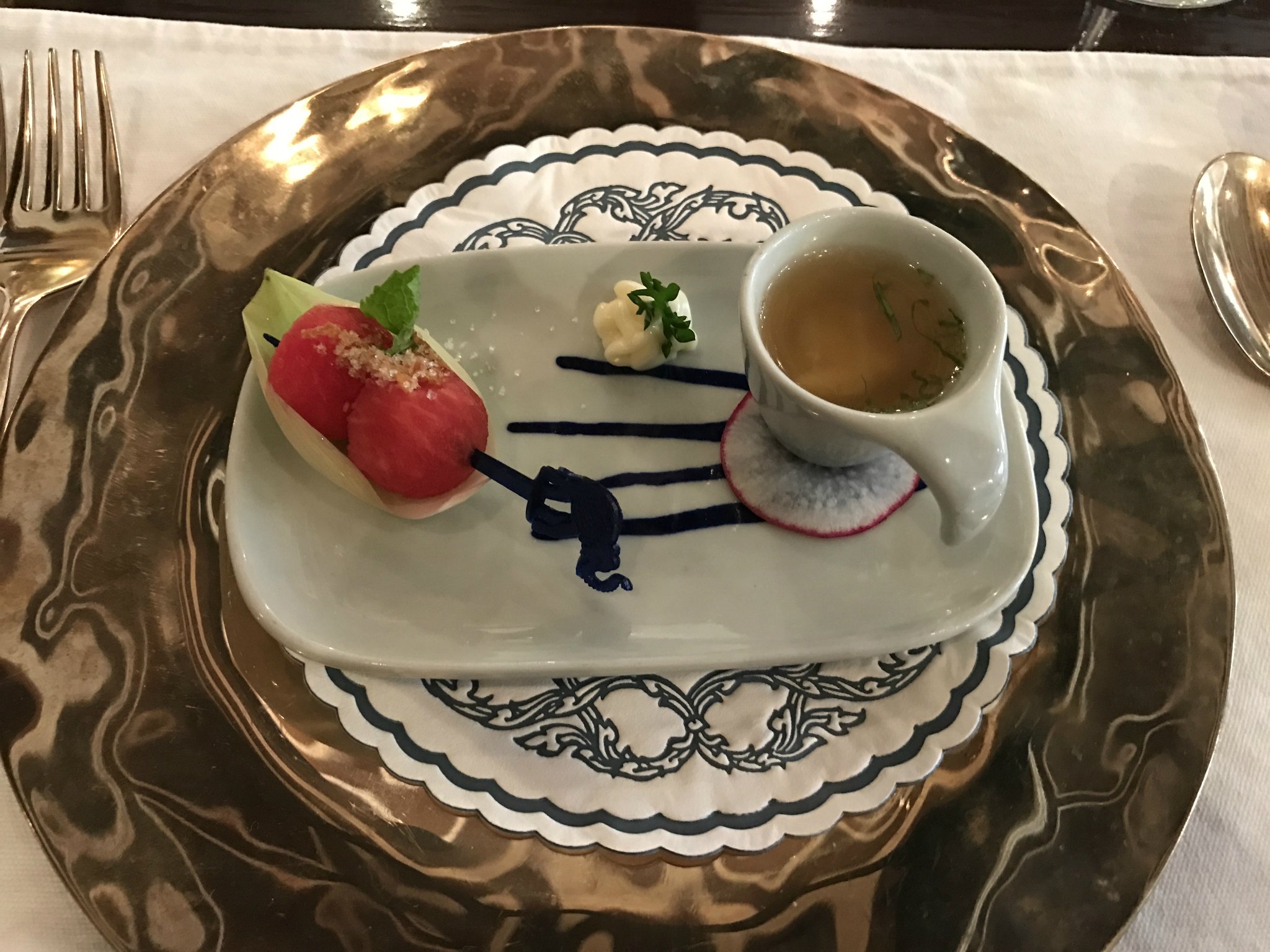 开胃菜是西瓜串,一口没了,没啥感觉。