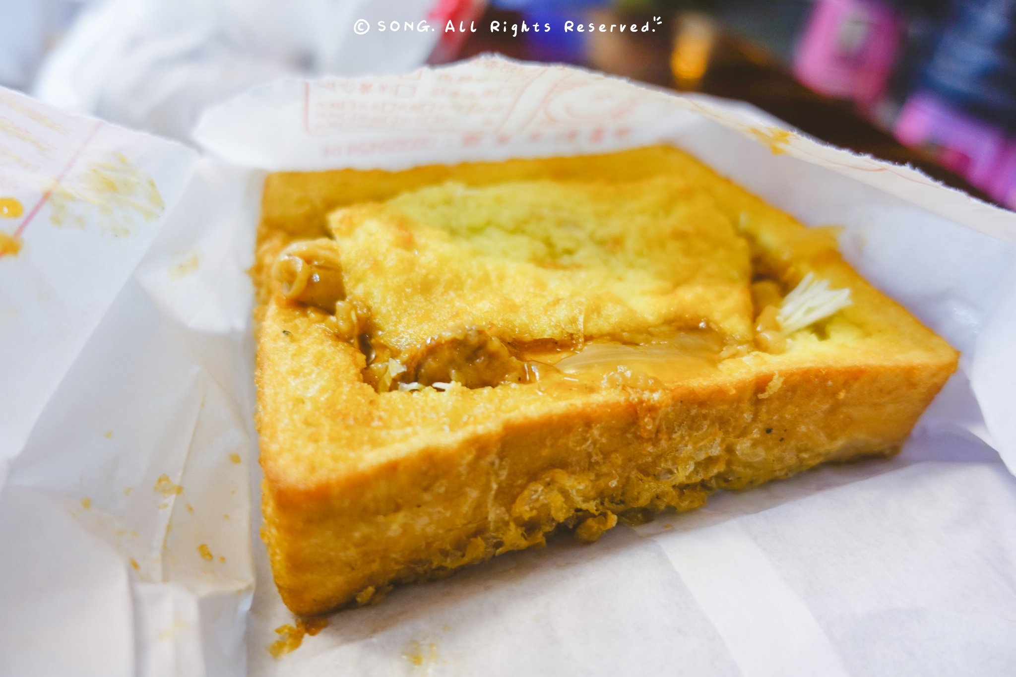 蒋家的队伍超长,排完付款的队伍,还要耐心的等待出货的队伍~ 收银台挂牌子的才是还有的口味哦,如果想吃人气款,尽量早一些时候去,比如凤梨虾球~ 厚厚的面包吐司中空加上炒菜,炒菜味道不错,吐司个人觉得蛋液少了点,香味不够浓郁~ 如果裹蛋液的时候能再浸润一点就更完美了~!