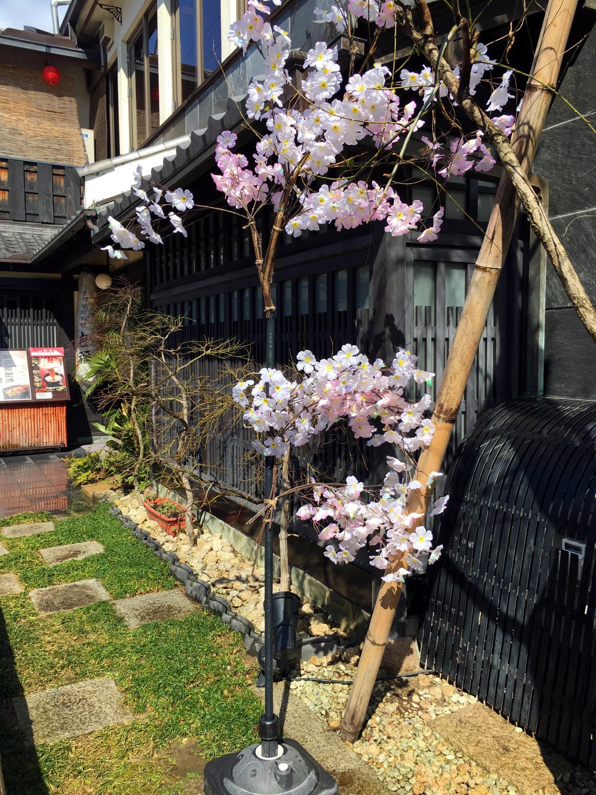 下车以后,看到了一边是桂川,一边是商业区,而商业区有一处凹进去的地方,就忍不住过去看看了。结果眼前就出现了一个很漂亮,又充满日式风格的小庭院。整个庭院组合起来,就像一副精致的日本画作,忍不住按下相机捕捉这一幕。