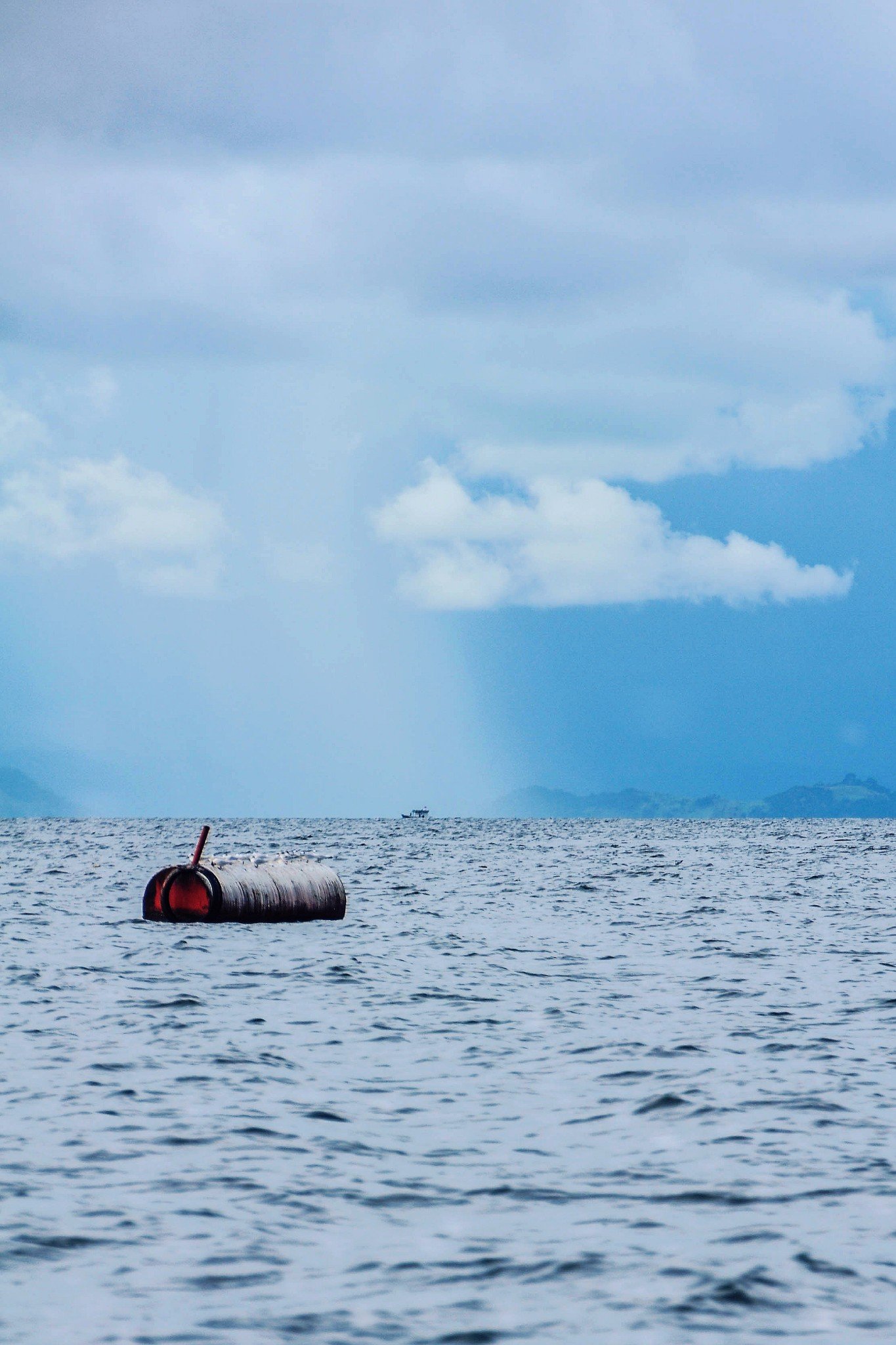 从马布岛回卡帕莱的海上,远处的海面上下起了暴雨,还是头一次看到暴雨云。