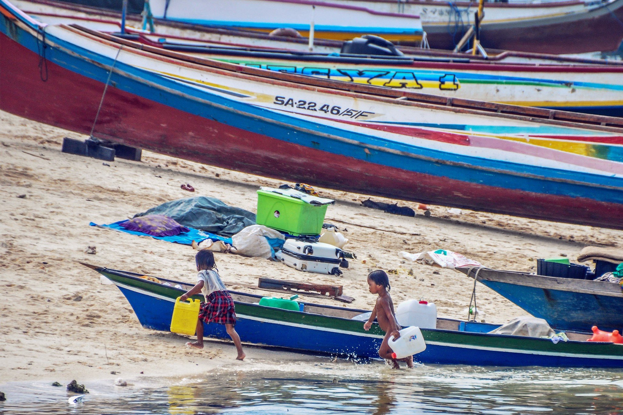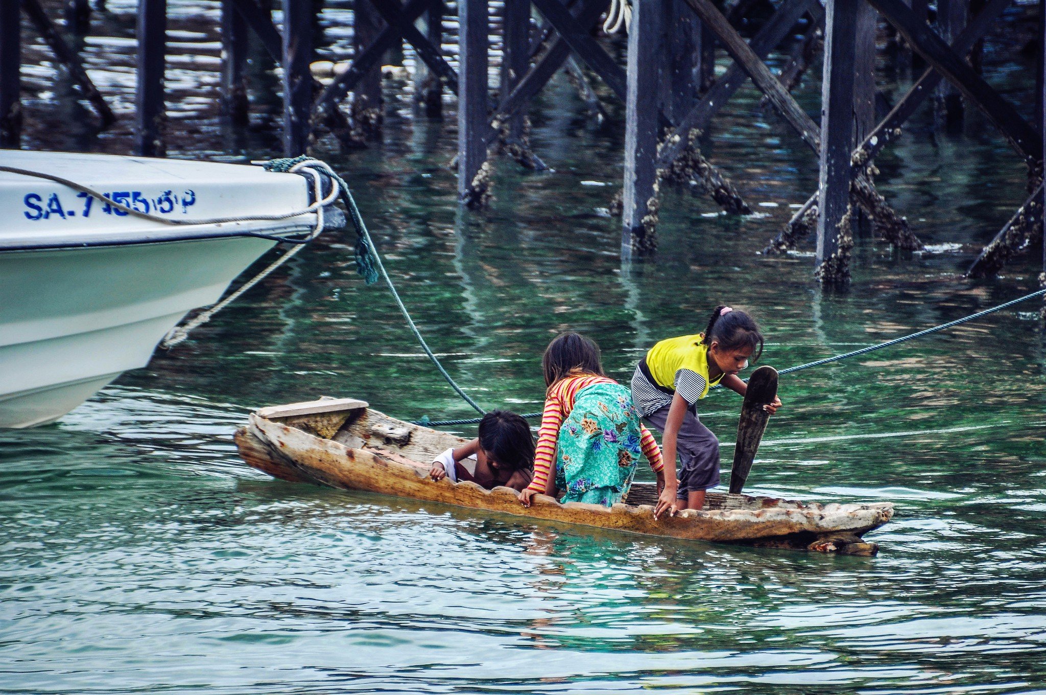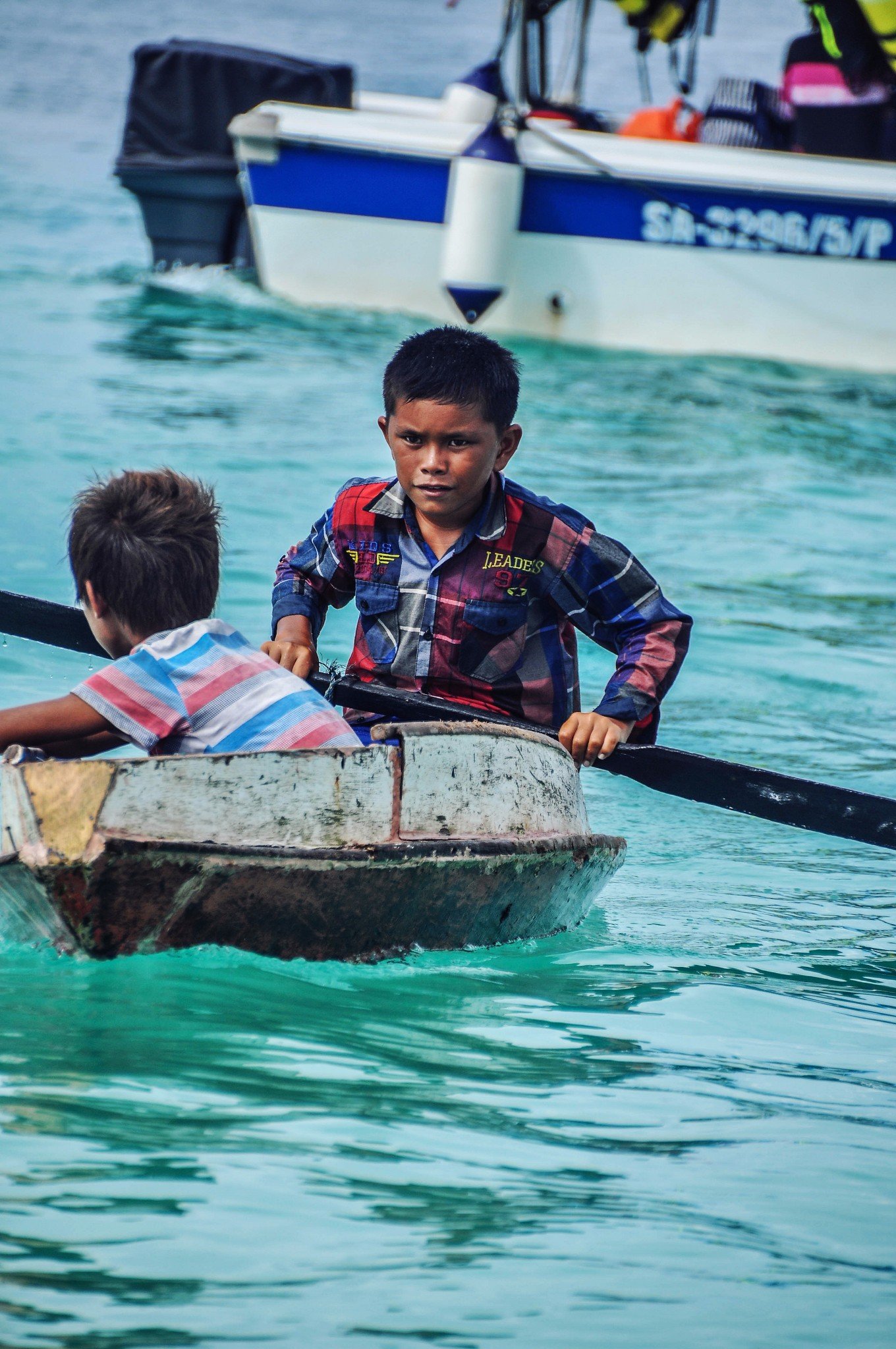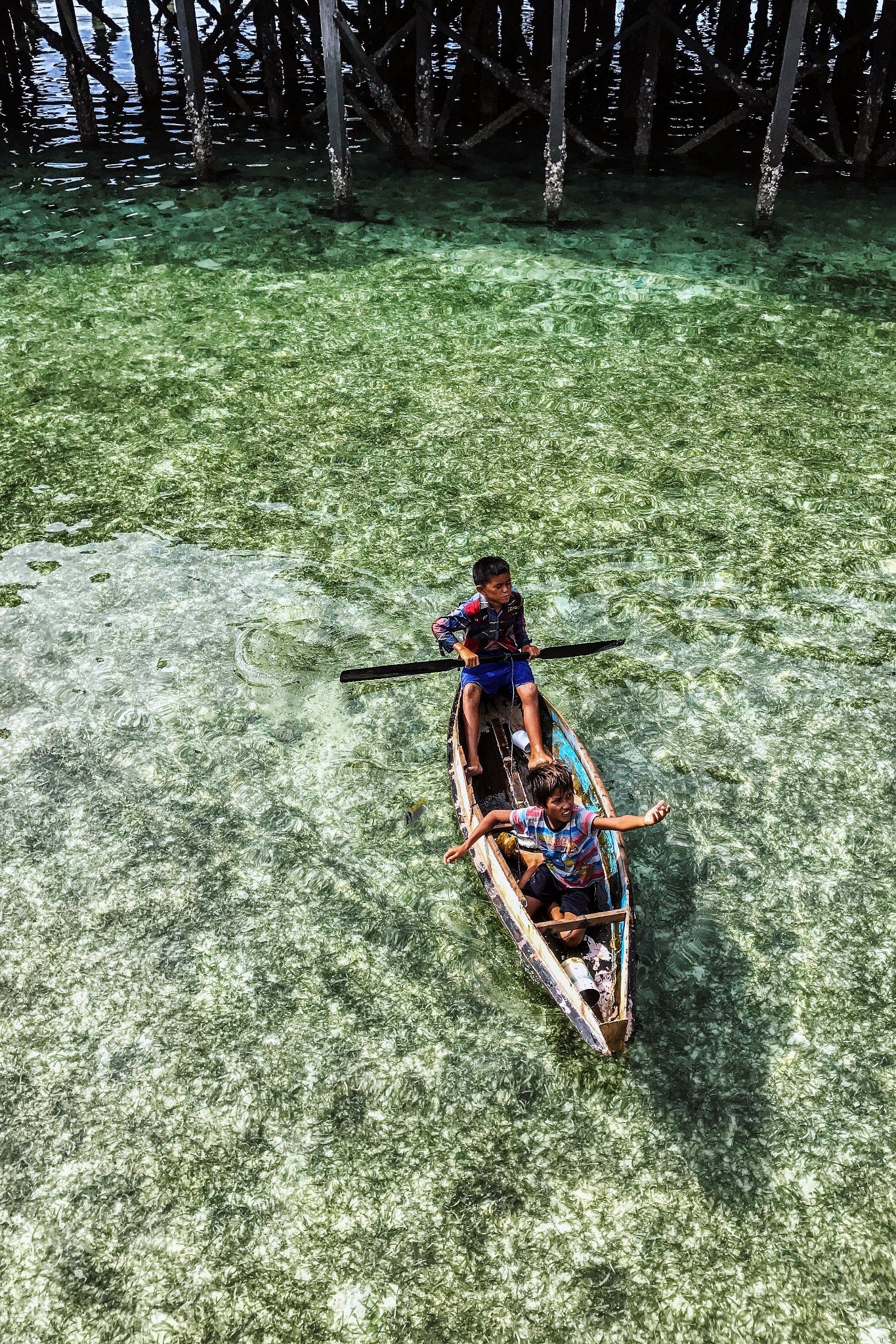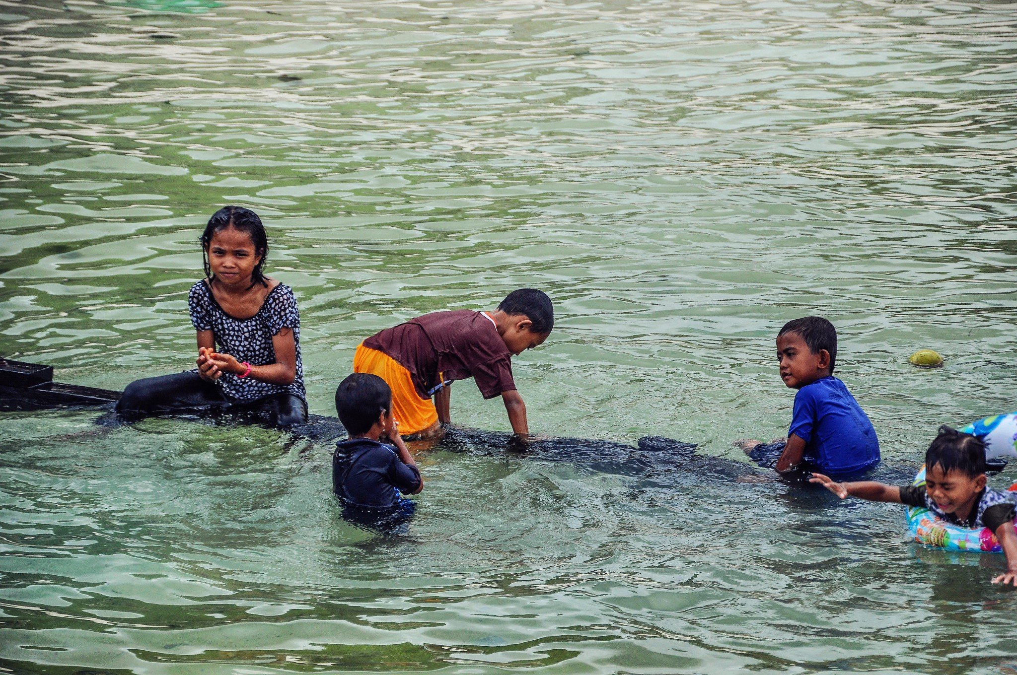 也不是所有的孩子都会直接划过来向游客要东西。有不少孩子只是在海里嬉戏,她们是无忧无虑的,大海御赐他们独一无二的水中天赋,使得他们可以在2、3岁时就在海中游泳,虽然达不到巴瑶族孩子那样还海中如履平地的水准,但是水中技能也极其了得。