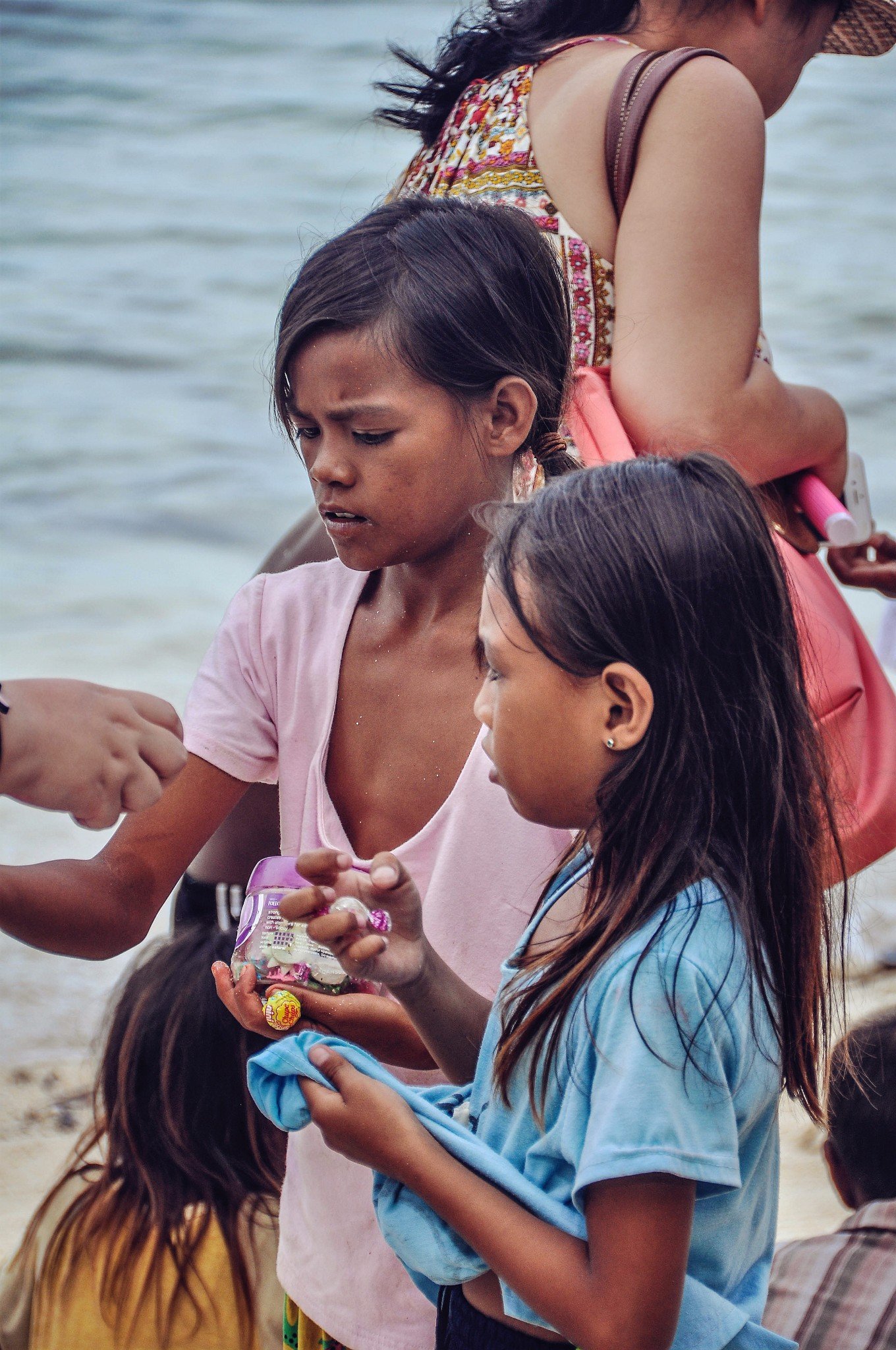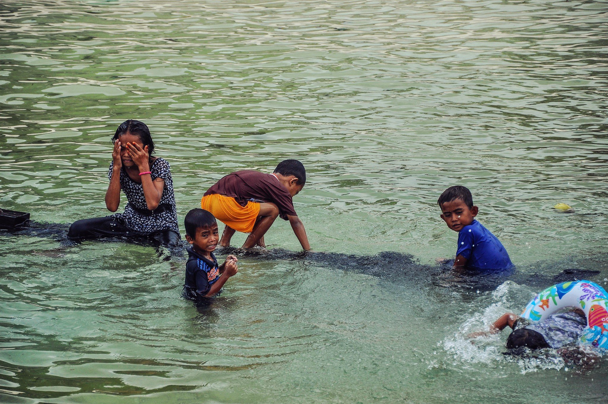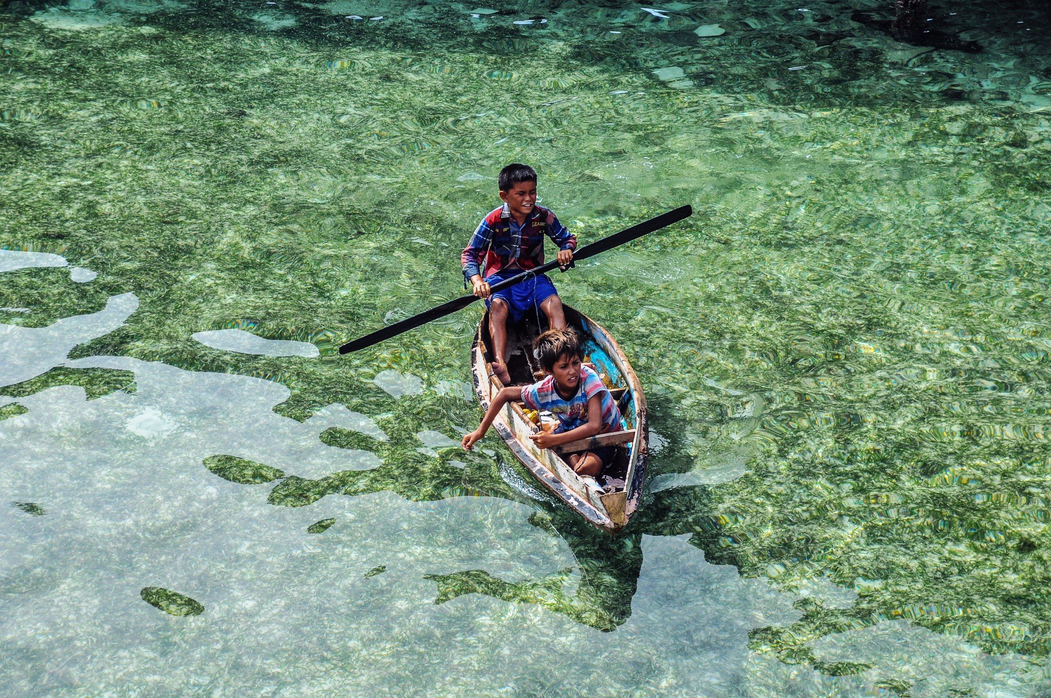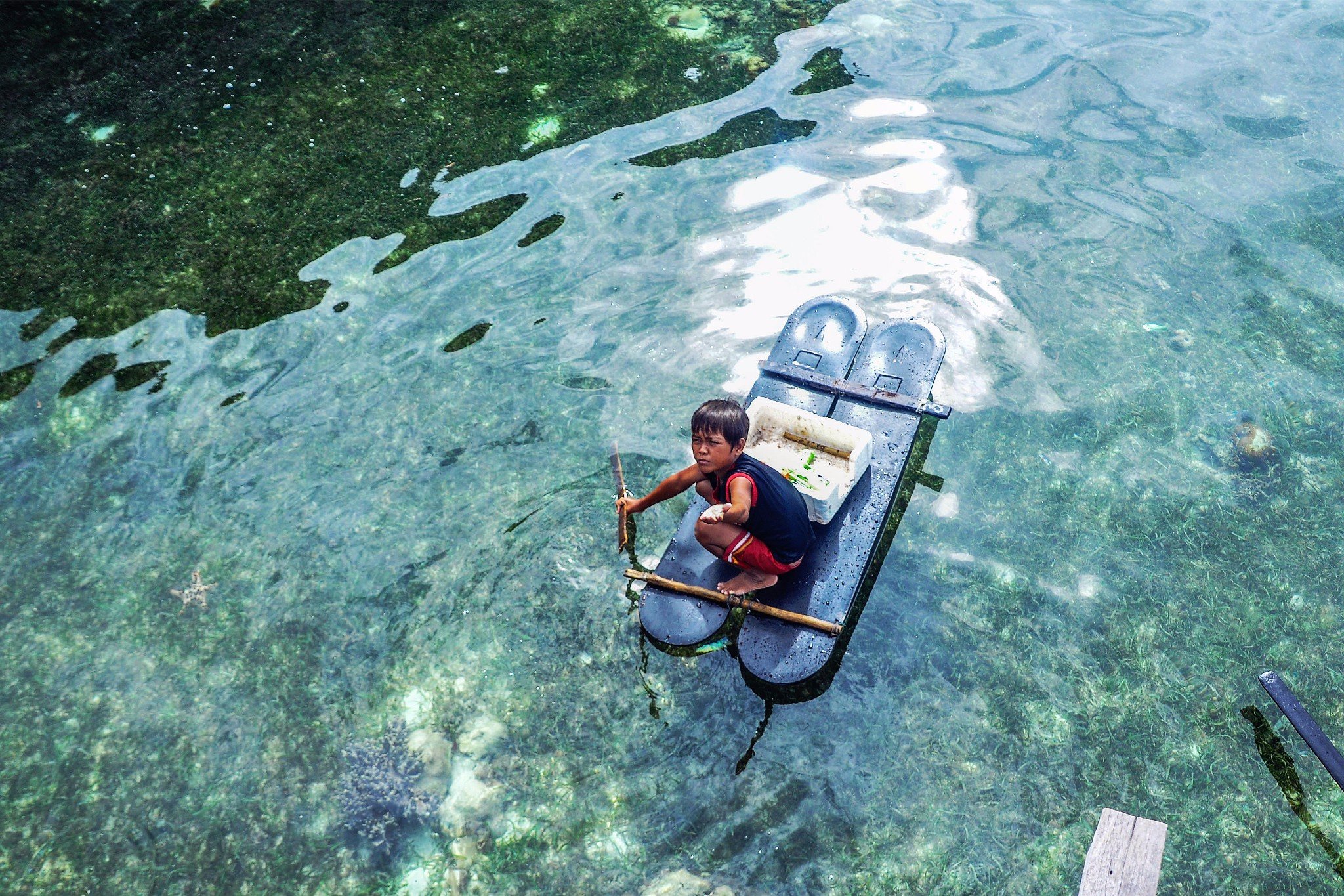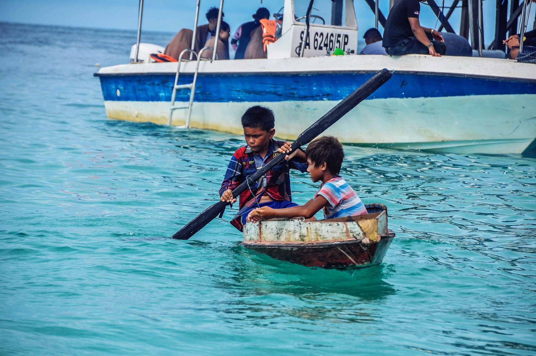 也不是所有的孩子都会直接划过来向游客要东西。有不少孩子只是在海里嬉戏,她们是无忧无虑的,大海御赐他们独一无二的水中天赋,使得他们可以在2、3岁时就在海中游泳,虽然达不到巴瑶族孩子那样还海中如履平地的水准,但是水中技能也极其了得。