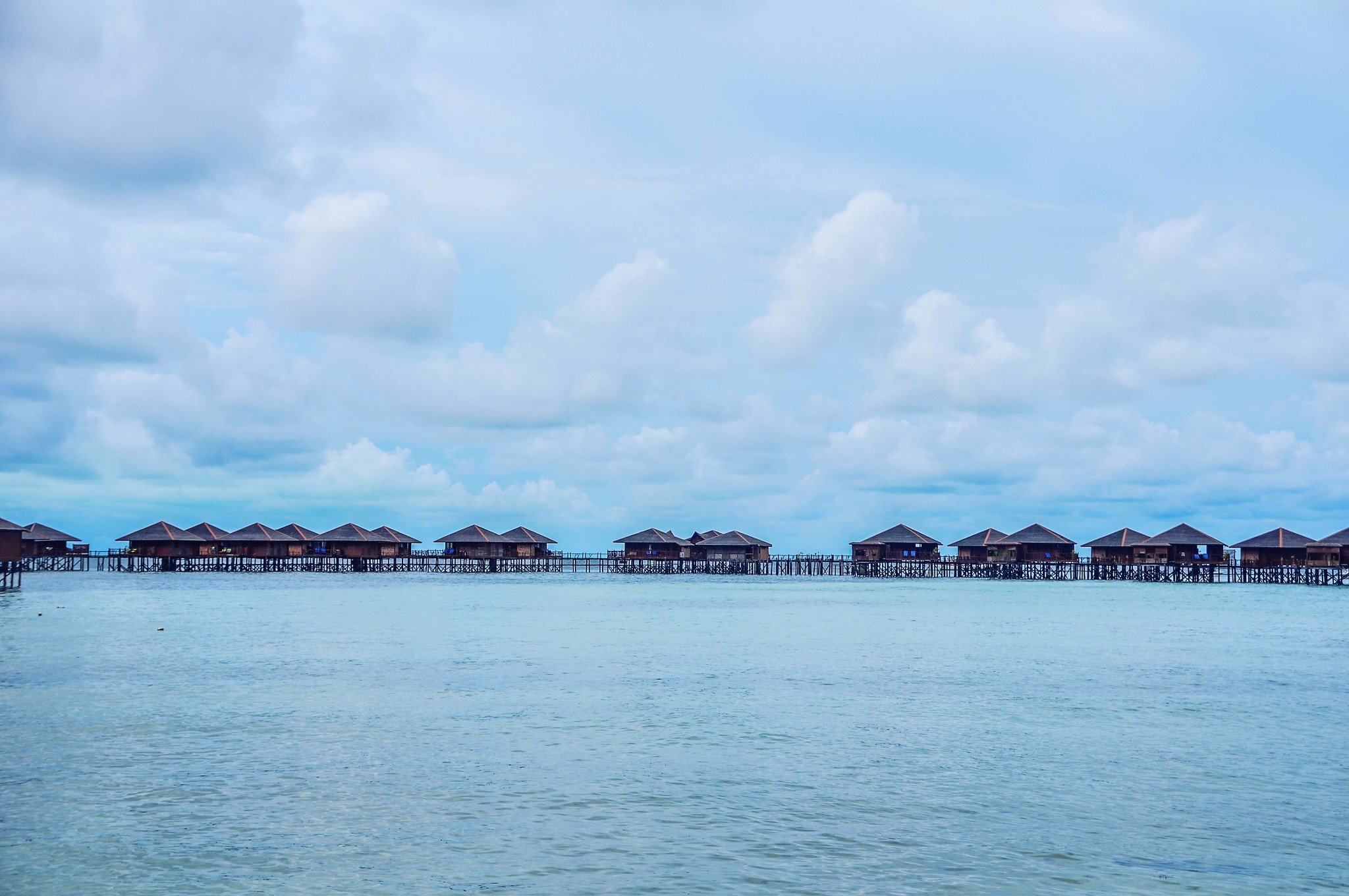 下午马布岛天气并不好,有点阴。远远就看到了郁郁葱葱的岛屿和一排排豪华水屋。水屋通过廊桥连接马布岛。